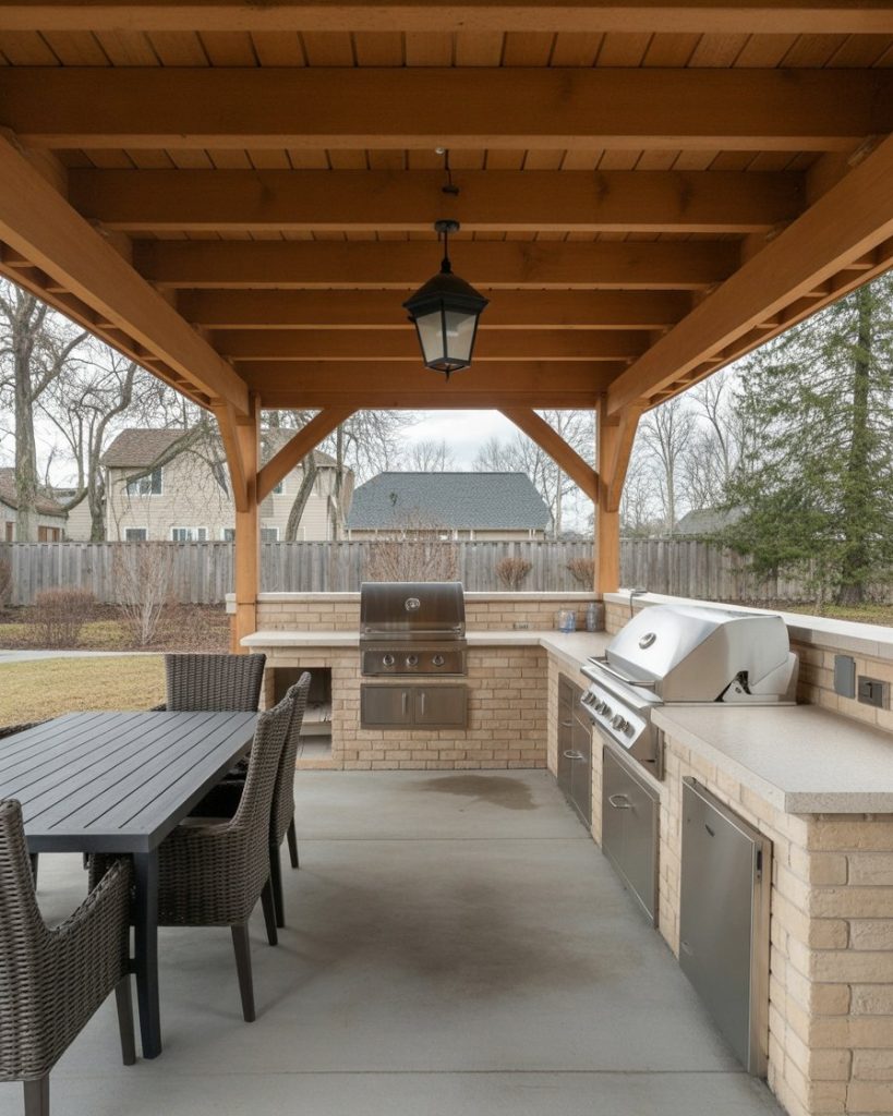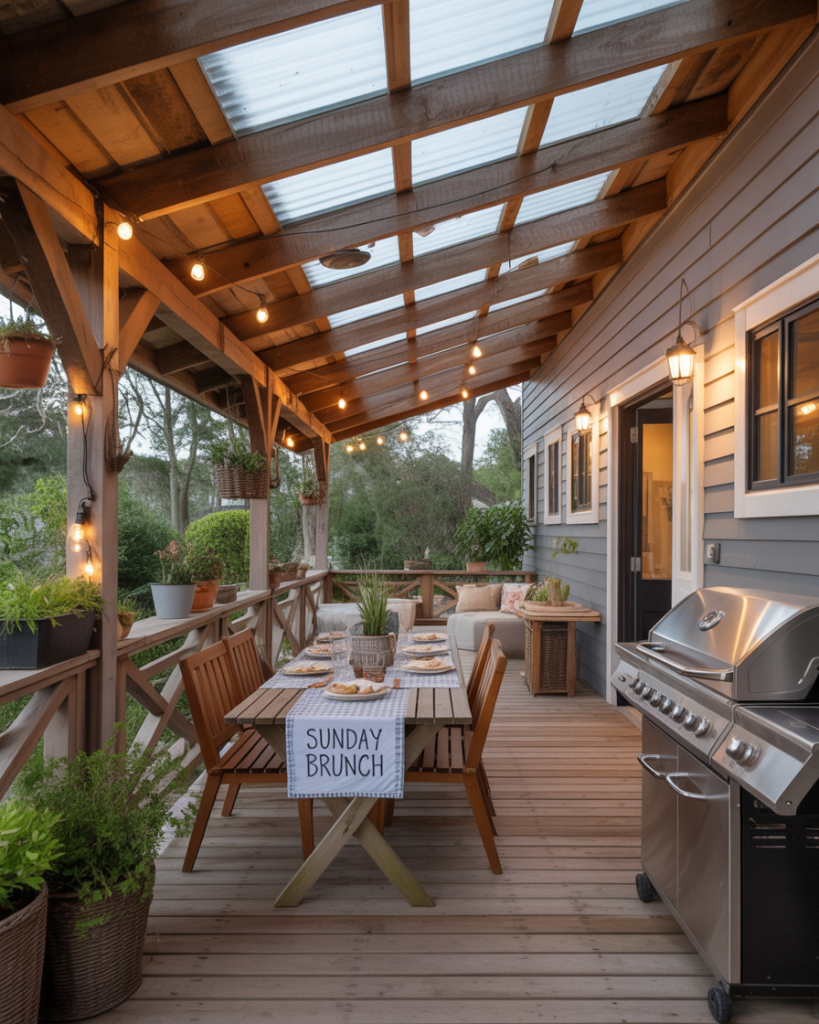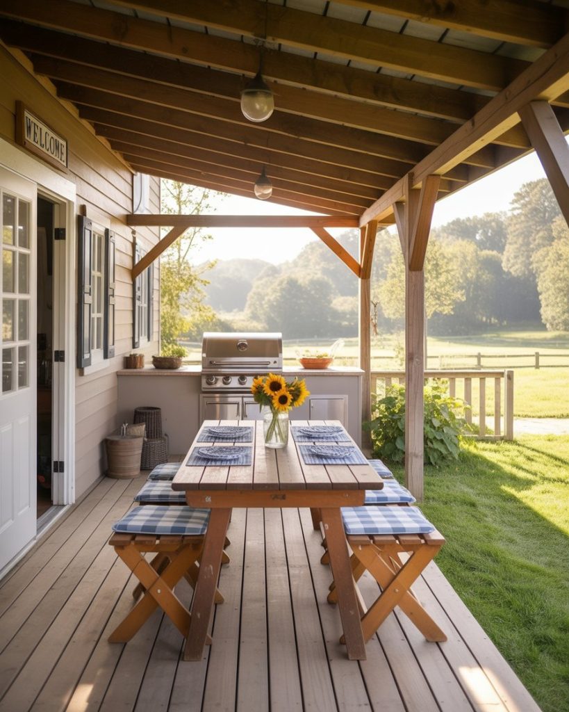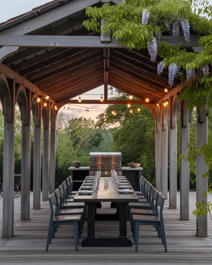 For those who love gatherings, an outdoor dining pavilion with a covered deck is perfect. Add a kitchen, grill, and structured layout for hosting everything from family dinners to celebrations. I once attended a birthday party under such a pavilion, and it felt both festive and cozy, rain or shine.