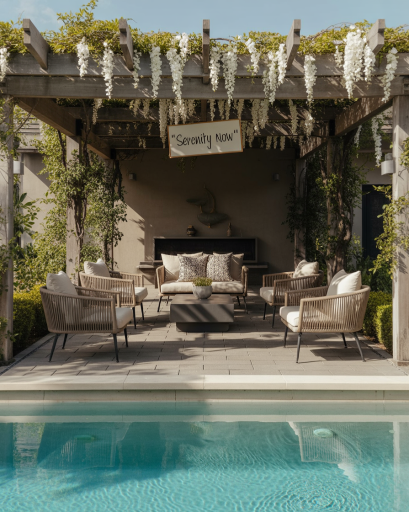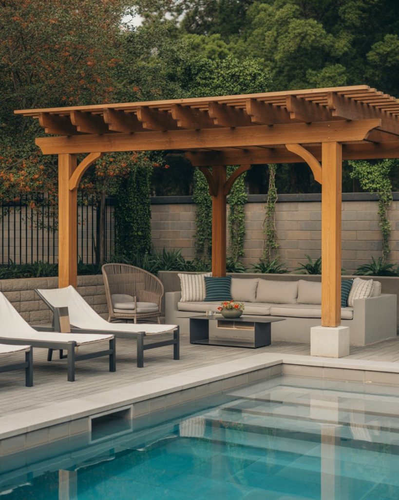 Nothing feels more luxurious than a patio beside a pool. Pairing water with pavers or concrete ensures safety and style, while adding a covered deck or pergola nearby completes the resort-like atmosphere. Growing up, my summers were spent at a friend’s pool patio, and the mix of swimming, grilling, and lounging was unforgettable.