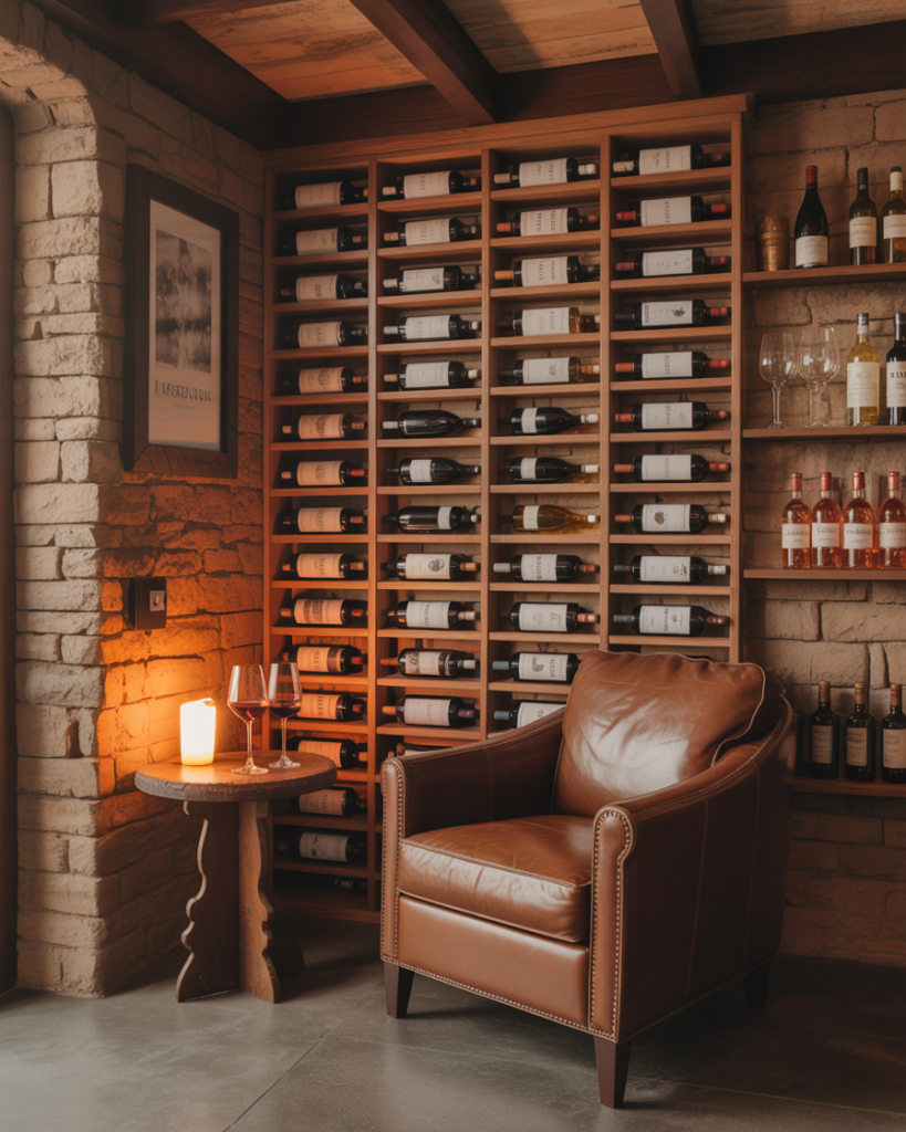 Transforming an unfinished corner into a wine storage nook is both stylish and practical. Even on a budget, adding racks, controlled lighting, and rustic furniture options can create a cozy cellar feel. Bloggers at Houzz highlight how creative ideas layout make small wine areas elegant without expensive construction.