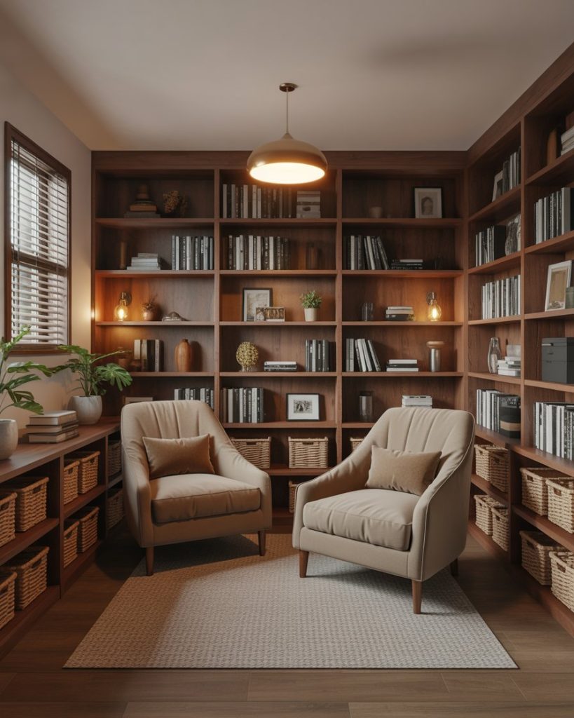 Turning your basement into a reading haven is an easy, cheap idea for book lovers. Built-in shelves double as storage solutions, while soft furniture options like armchairs create comfort. Pair with warm color palettes and layered lighting. As Apartment Therapy suggests, basements often make cozy libraries because of their natural quietness.