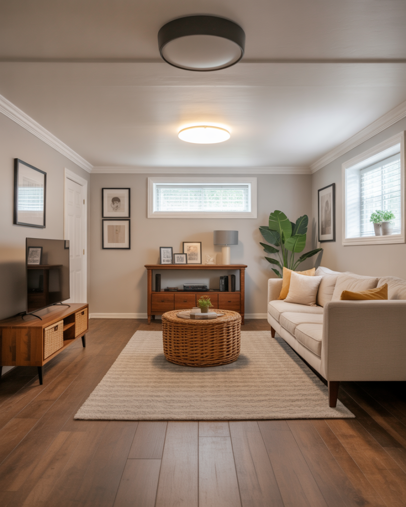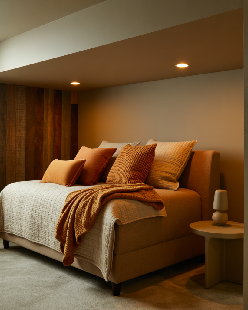 An inexpensive guest suite is a welcoming basement upgrade. Using basic furniture options like a sleeper sofa, side table, and layered bedding, you can create comfort without overspending. Warm color palettes and easy touches like curtains add privacy. Bloggers at Young House Love often share basement guest makeovers that prove stylish hospitality doesn’t need a huge budget.