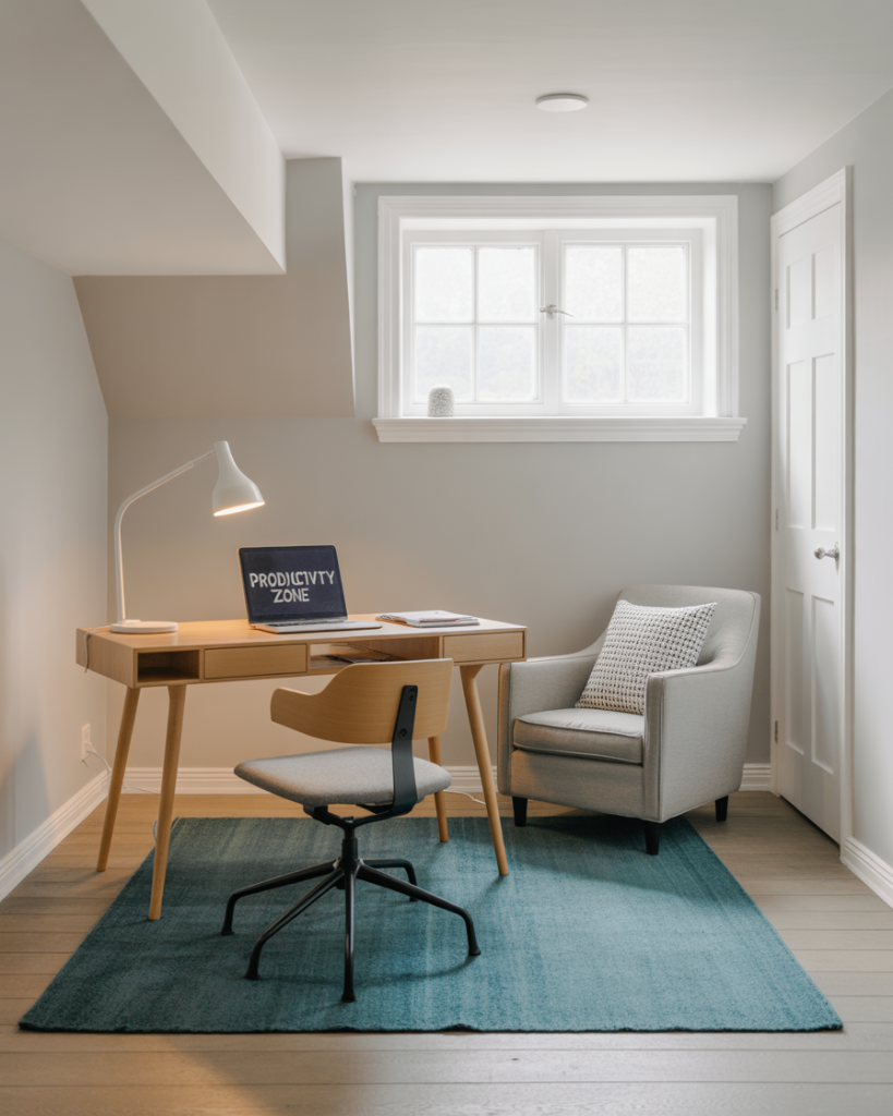 Turning an unfinished basement corner into a home office is an affordable and easy project. With compact furniture options, cozy rugs, and energizing color palettes, you can create a productive environment. A desk near a window or light well keeps the room from feeling closed in. The Spruce suggests keeping basic office designs simple but functional.