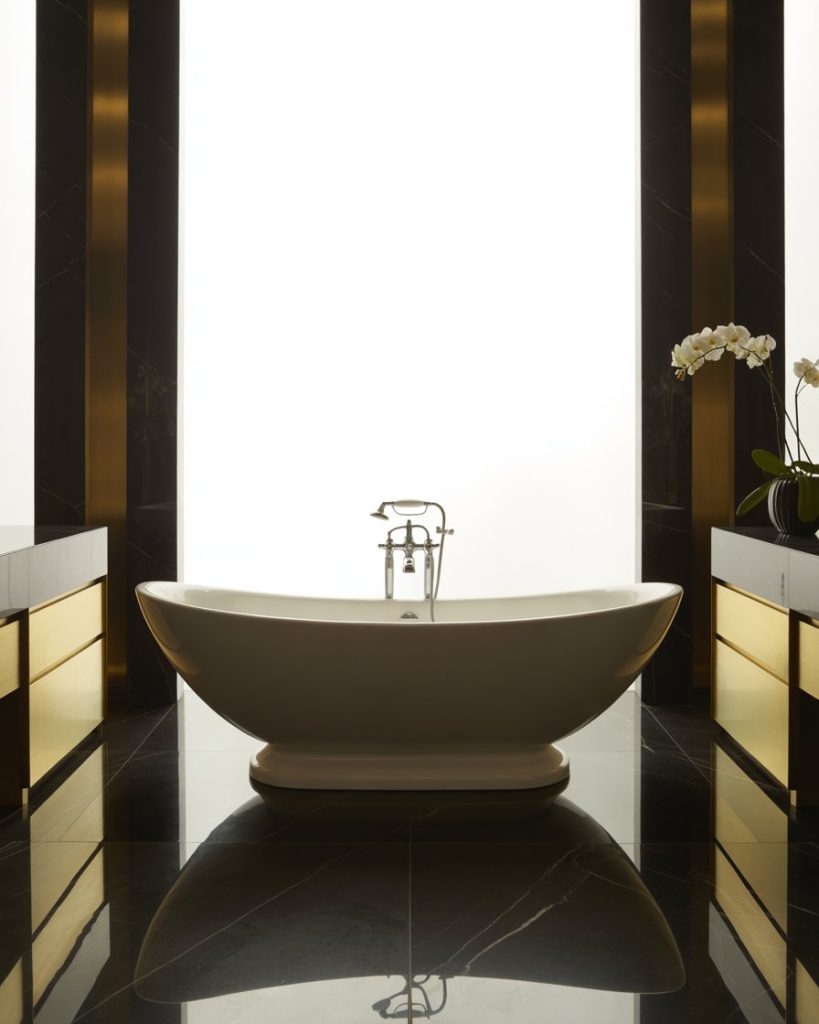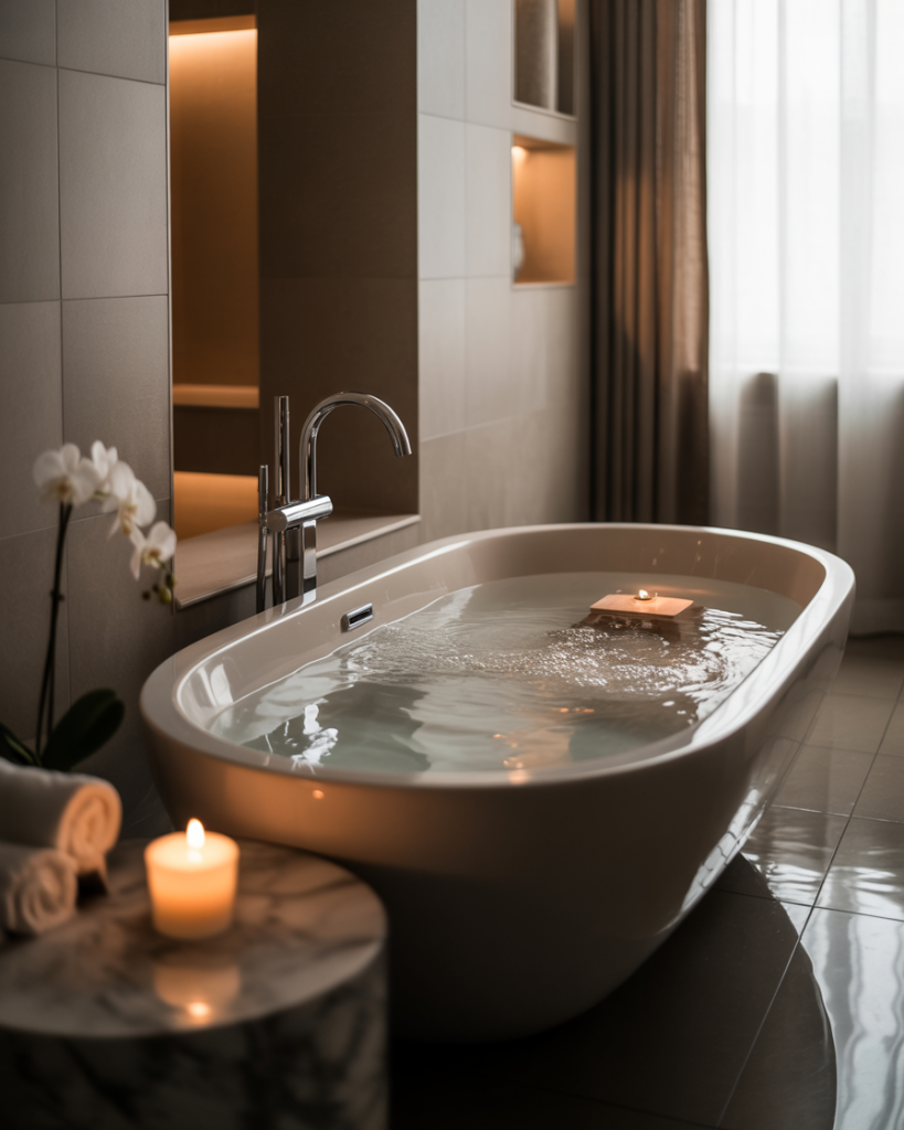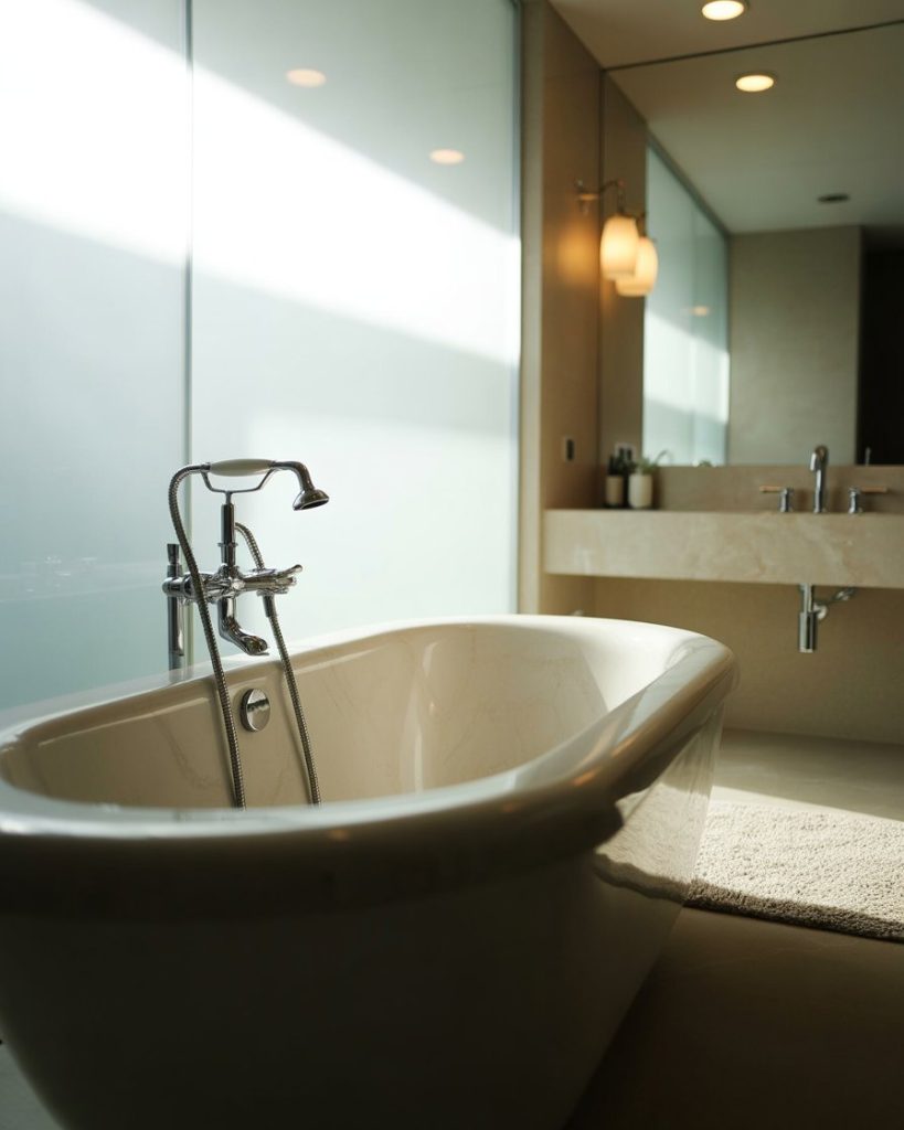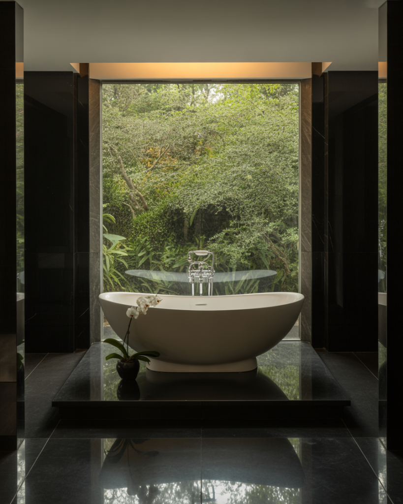 In luxury design, a bathtub often becomes the showpiece. A freestanding tub with marble or design luxury black finishes creates a powerful visual. Placing it near a window maximizes natural light, while dimmable lamps add ambiance for evenings. In 2025, homeowners increasingly see the bathtub as both functional and a personal sanctuary, blending relaxation with high design.