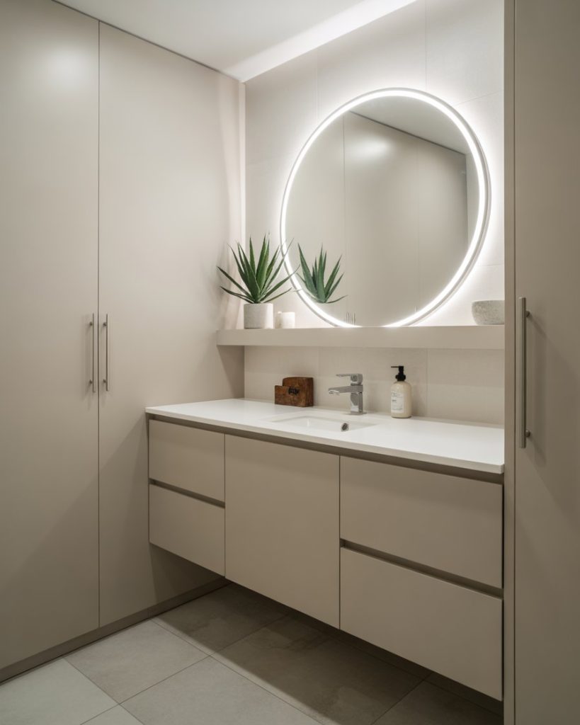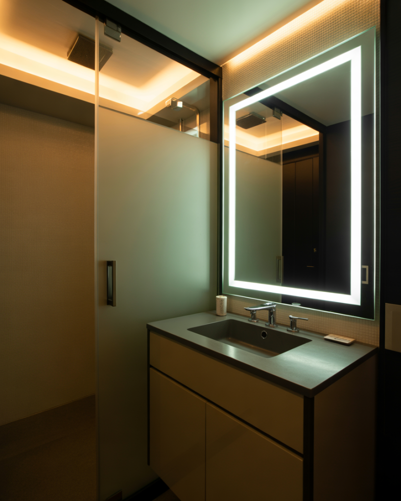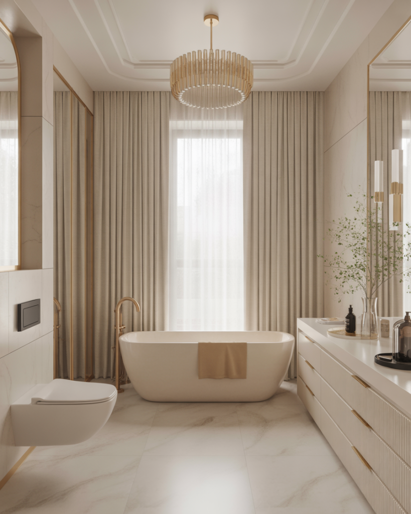 Lighting plays a crucial role in creating an aesthetic bathroom. Layered lights—task, accent, and ambient—elevate even design luxury modern small space interiors. LED mirrors, under-cabinet strips, and pendant lamps highlight textures while enhancing functionality. Influencers note that lighting has become the “make-or-break” element of bathroom luxury in 2025.
