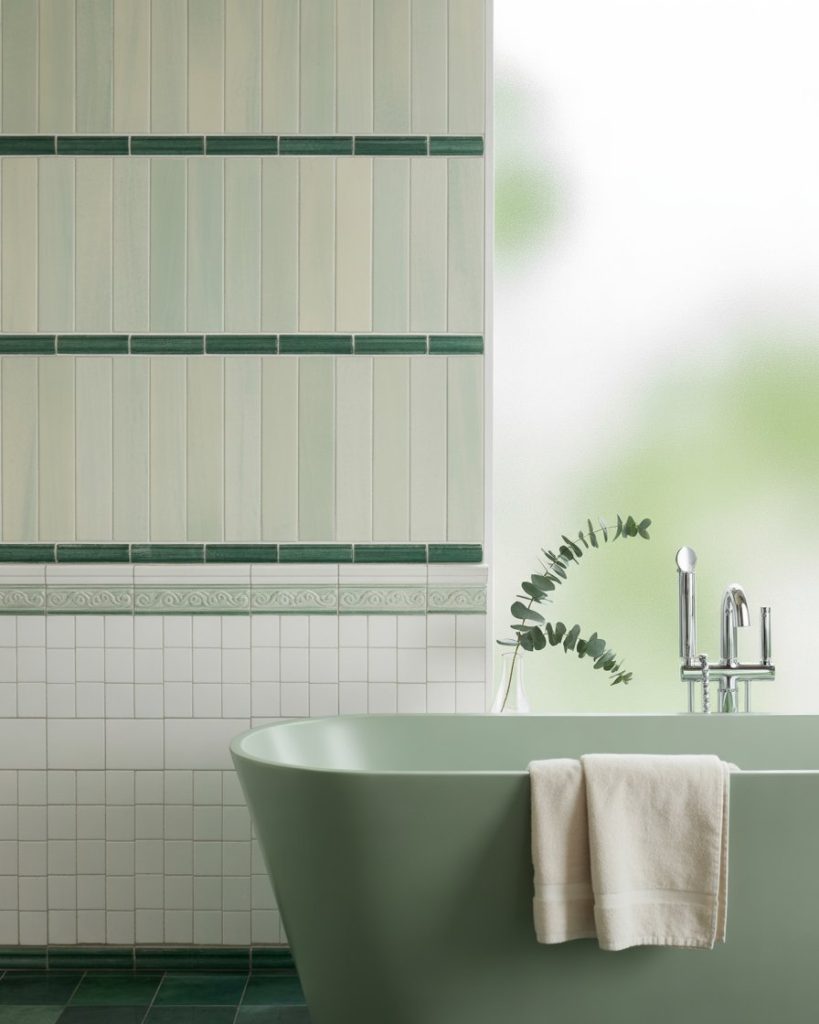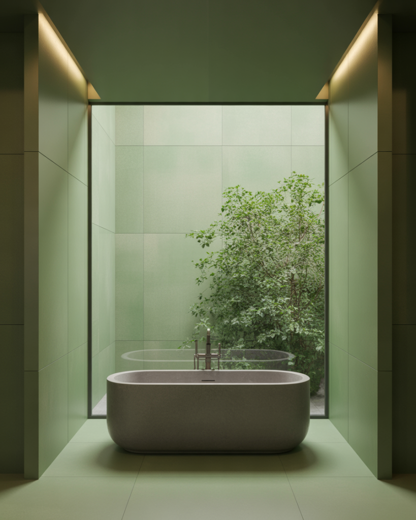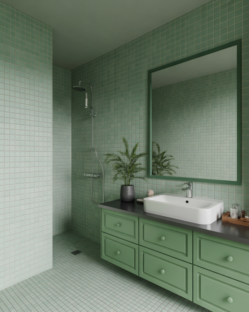 The combination of green tiles and grey accents is a modern favorite. Soft sage with pale grey creates a calming tone, while darker emeralds with charcoal grey bring sophistication. Designers predict this palette will dominate design modern 2026 bathrooms, especially in U.S. cities where homeowners seek both freshness and refinement in their interiors.