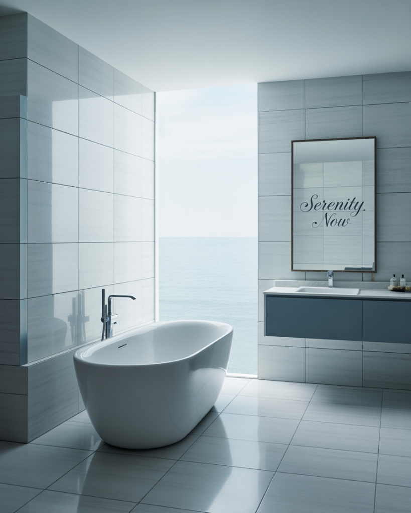 Combining grey with soft blue accents creates a calming, coastal-inspired atmosphere. This palette works well in design luxury modern white tile setups, offering subtle elegance while keeping the room bright. Designers highlight this combination as a timeless choice for American bathrooms, particularly in 2026, where serene tones are central to wellness-driven design.