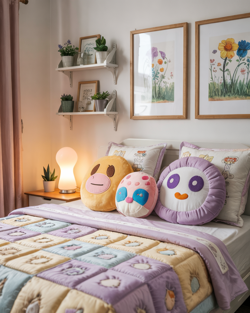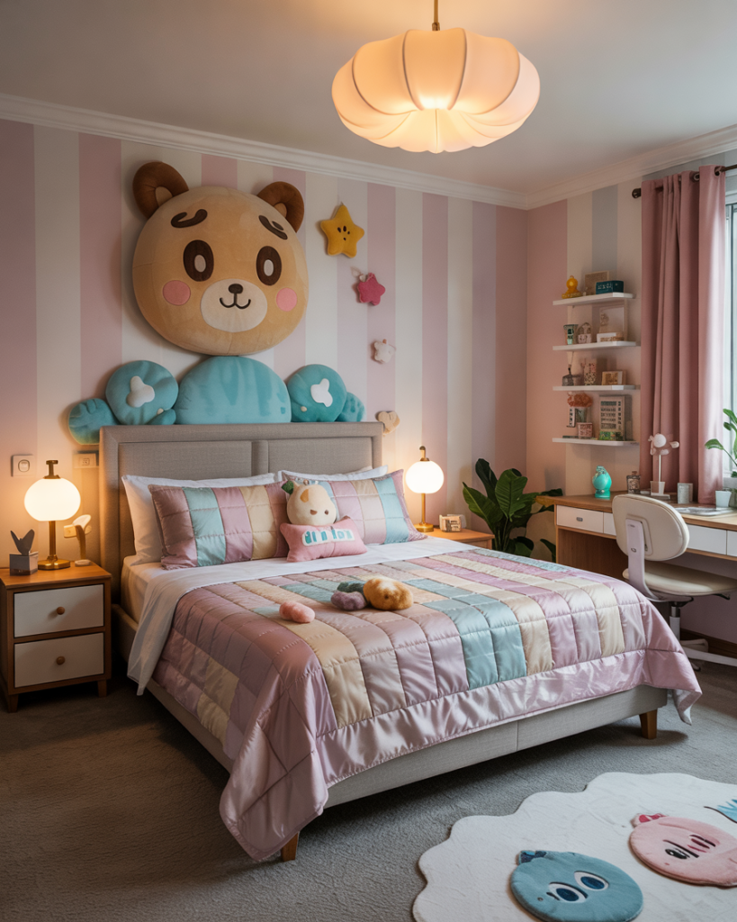 Bedrooms inspired by ACNH and Stardew Valley bring childhood comfort into adult life. Pastel palettes, quilted throws, mushroom lamps, and cute storage pieces shape a playful but soothing environment. Perfect for gamers, creatives, and anyone who still loves cozy pixels.