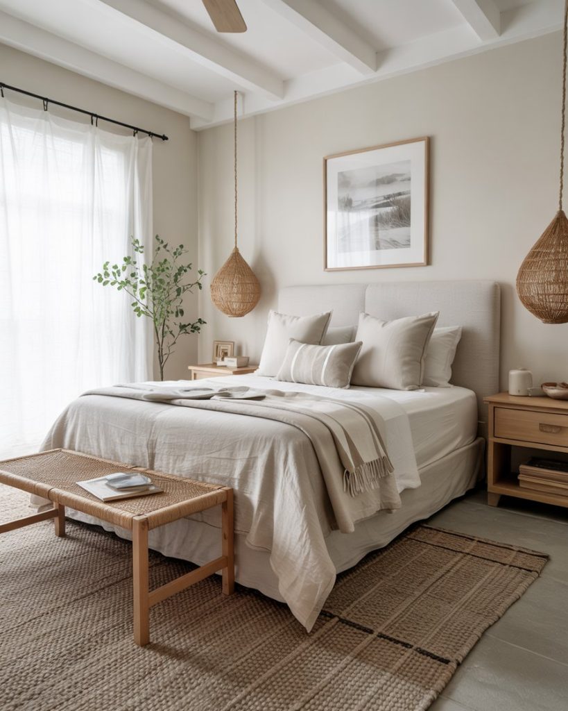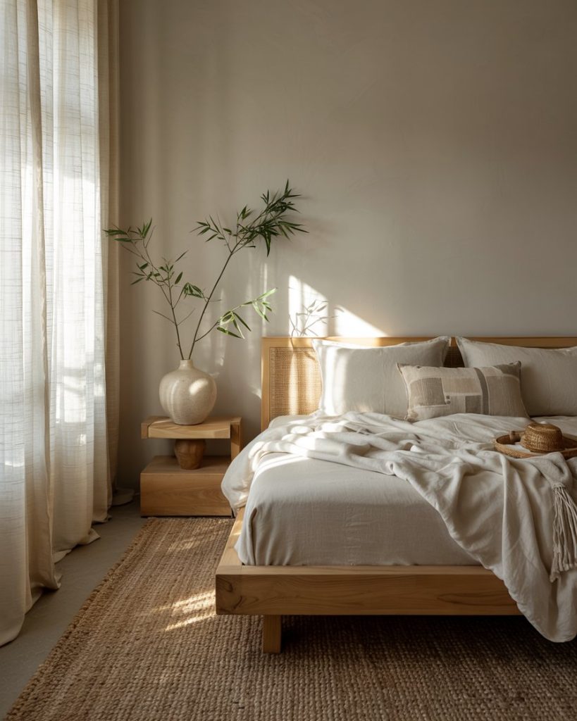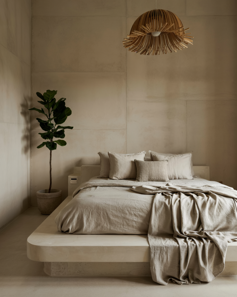 The new minimal direction brings nature indoors. Bamboo lamps, stone textures, and earthy tones give tranquility without excess. Designers say the goal is not to decorate but to balance. This concept transforms bedrooms into natural sanctuaries where simplicity and organic warmth coexist. Ideal for anyone who finds peace in quiet materials and gentle light.
