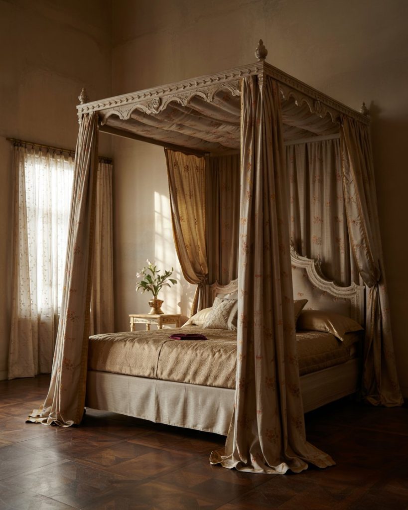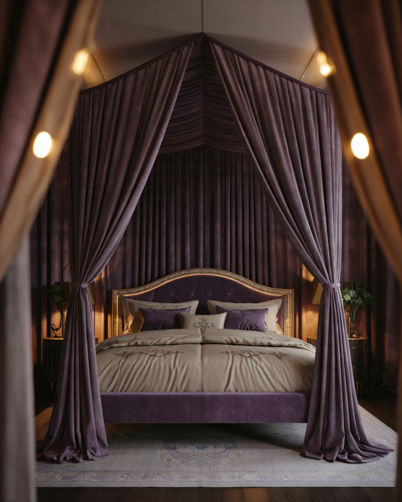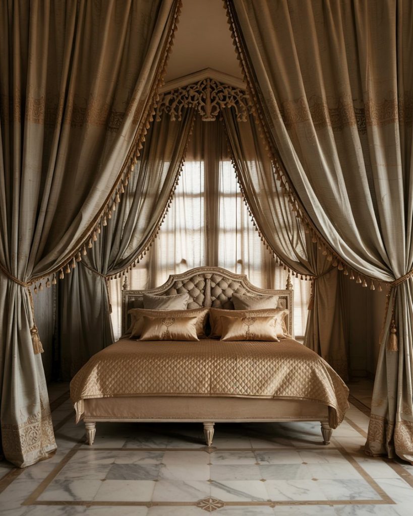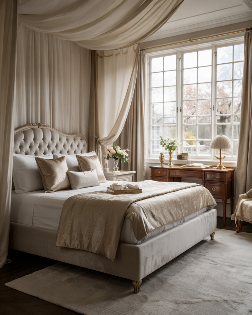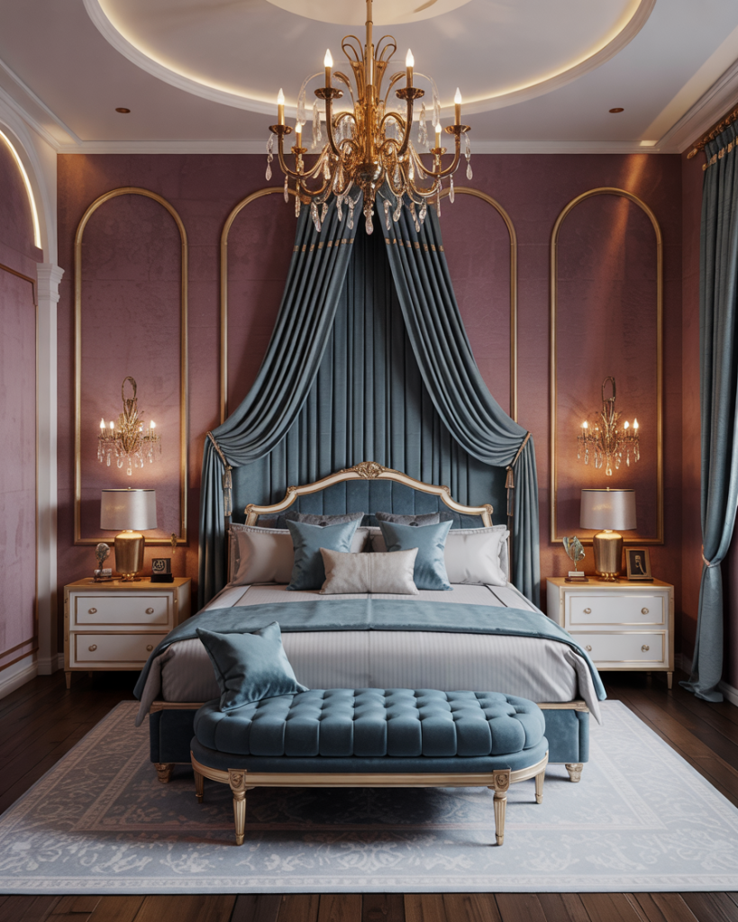Royal luxury is returning, but updated for 2026. Instead of heavy drapery and gold overload, designers use velvet textures, jewel colors, and soft arches for a dramatic yet breathable look. It feels like a romantic palace scene—only lighter, cleaner, and easier to maintain.