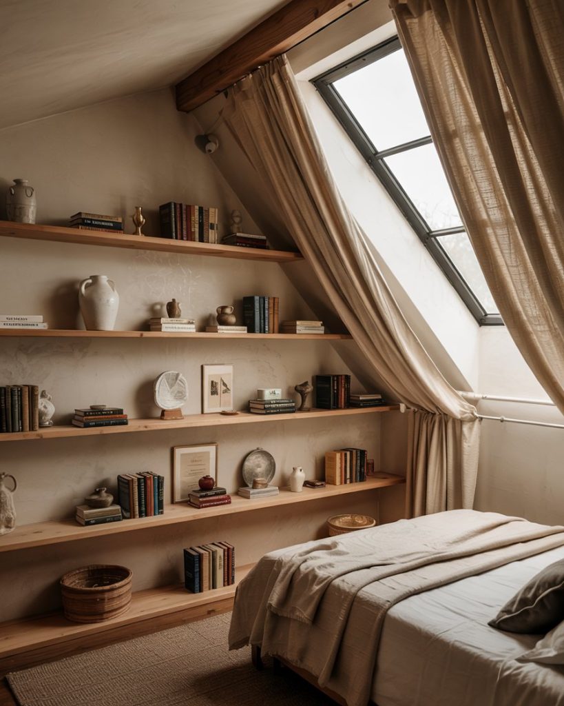 The attic bedroom trend finally gets design attention. Sloped ceilings become cozy frames for beds and seats, while skylights bring natural drama. Turning old storage space into a dreamy hideaway works well for teens, guests, or anyone who wants a private corner under the roof.
