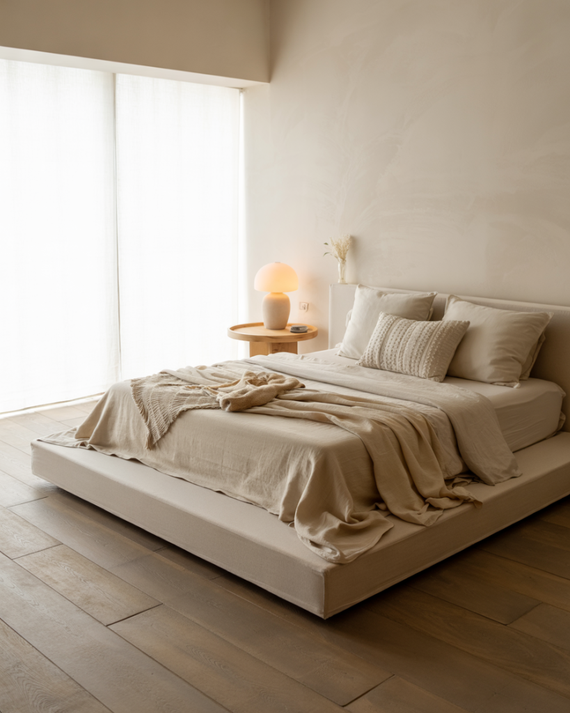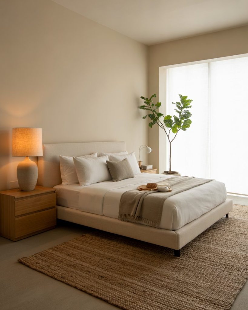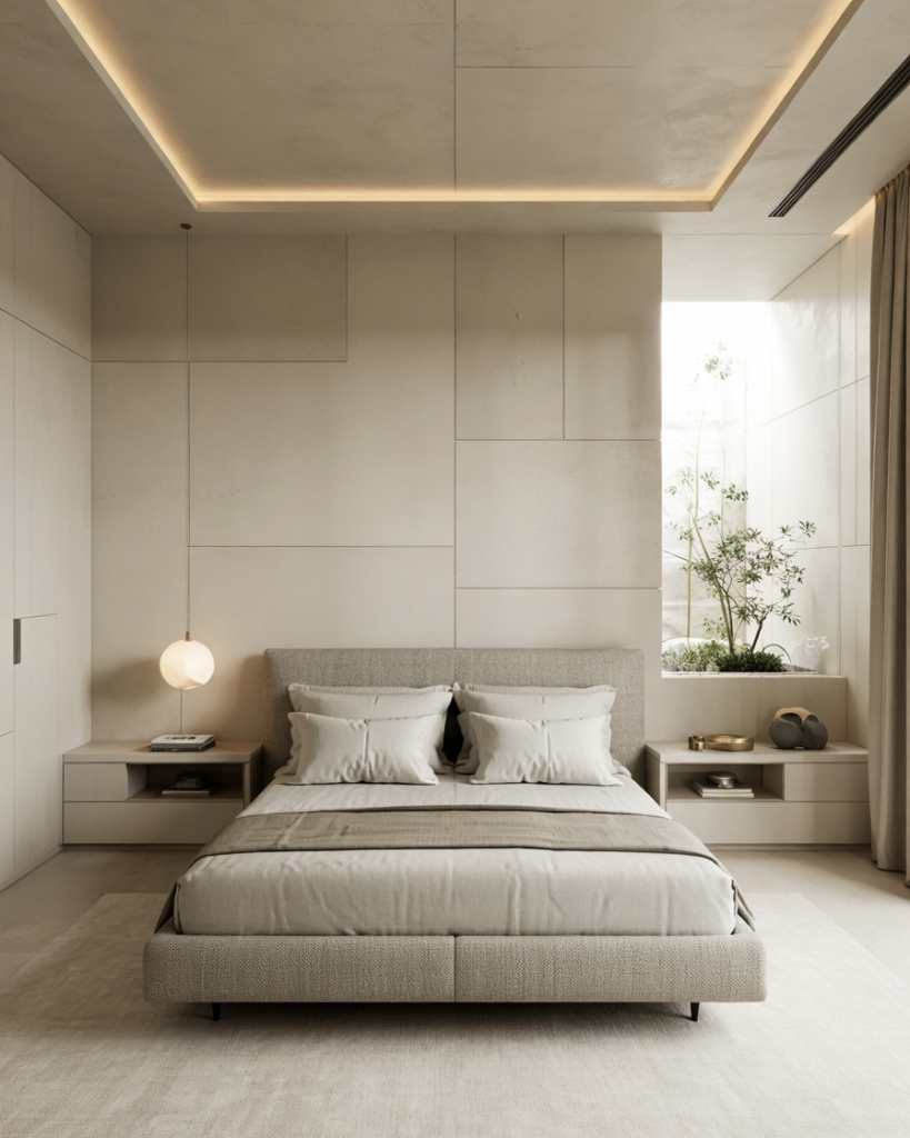 The modern master design trend of 2026 embraces Japandi—where Japanese wabi-sabi calm meets Scandinavian simplicity. Smooth oak tones, linen curtains, and clean lines define this balance of minimal and cozy. Imperfections like handmade pottery or uneven wood grain add soul to the simple layout. The focus is peace through intention: fewer objects, higher meaning, and effortless beauty that doesn’t chase trends but creates timeless restfulness.