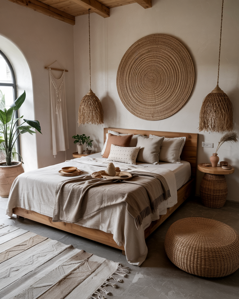 15. Minimal Bohemian Bedroom With Artistic Touches