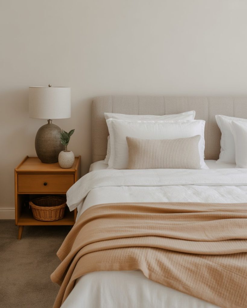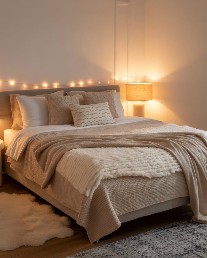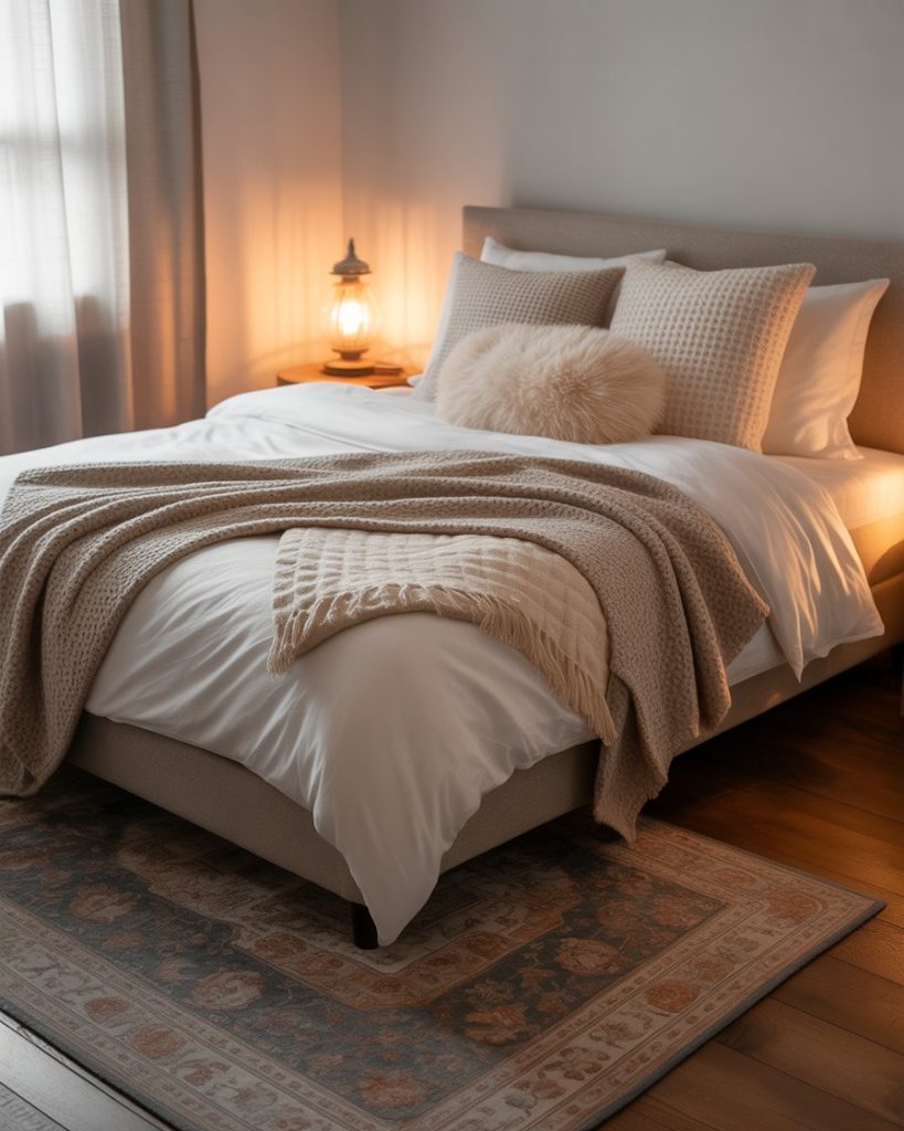Creating a cozy bedroom doesn’t require big spending—it’s all about textures and layers. Adding throw blankets, plush rugs, and soft lighting instantly warms the room. Even in a budget small room, this approach makes the space more welcoming, especially for a guest. As Emily Henderson often notes on her blog, layered textiles add both comfort and an aesthetic upgrade that feels curated yet simple.
