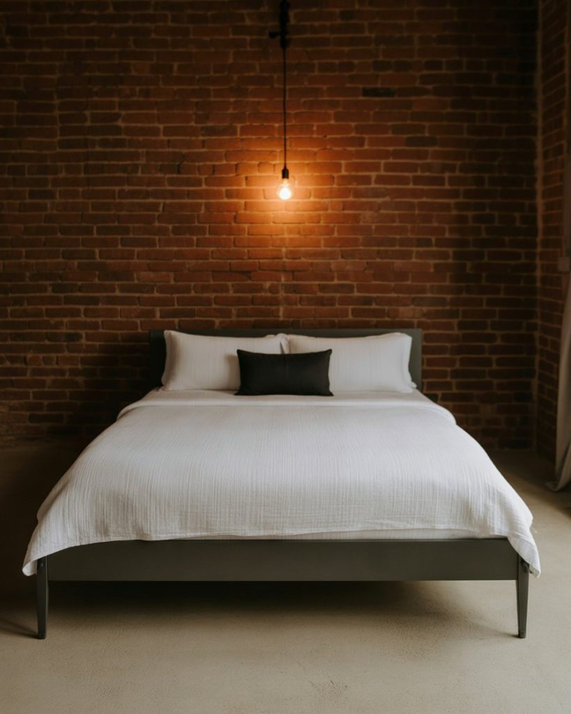 If you like a modern loft look, industrial design brings character through exposed brick, metal accents, and simple dark tones. This makeover works well in urban apartments or rentals where the bones of the building shine through. It can be done cheap with metal lamps, pipe shelves, and thrifted accents. I once helped a friend add faux brick wallpaper to his bedroom, and it completely changed the aesthetic.