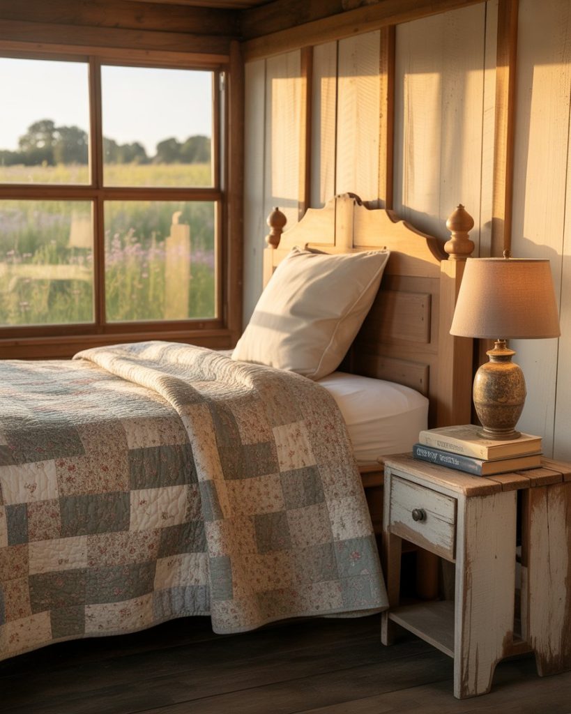 The farmhouse style combines comfort and tradition with natural woods, cozy quilts, and vintage charm. It’s especially inviting for a guest bedroom, where you want people to feel at home. Even a budget farmhouse look is possible with thrifted wood furniture and DIY decor. Joanna Gaines has made this look iconic with her blend of rustic and modern touches.