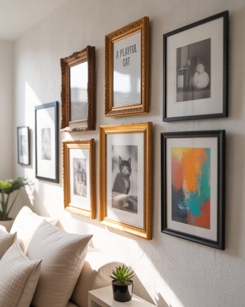 Turn your bedroom walls into a personal gallery with framed art, photos, or prints. This can be done cheap using posters, DIY frames, or even digital downloads. It adds personality and gives the room a curated feel. I once helped a neighbor hang a mix of family photos and thrifted art, and suddenly her rental bedroom looked like a magazine spread.