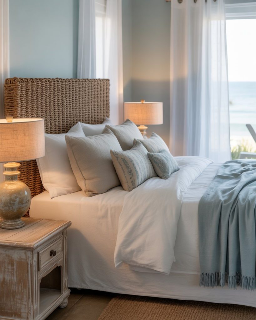 For a breezy, relaxed makeover, coastal style is full of light blues, whites, and natural textures. It’s easy to pull off, even on a budget, by adding striped bedding or driftwood-inspired decor. I once spent a summer in a coastal Airbnb, and the soft colors made the room feel fresh and open all season long. Designers on Coastal Living often highlight this timeless approach.