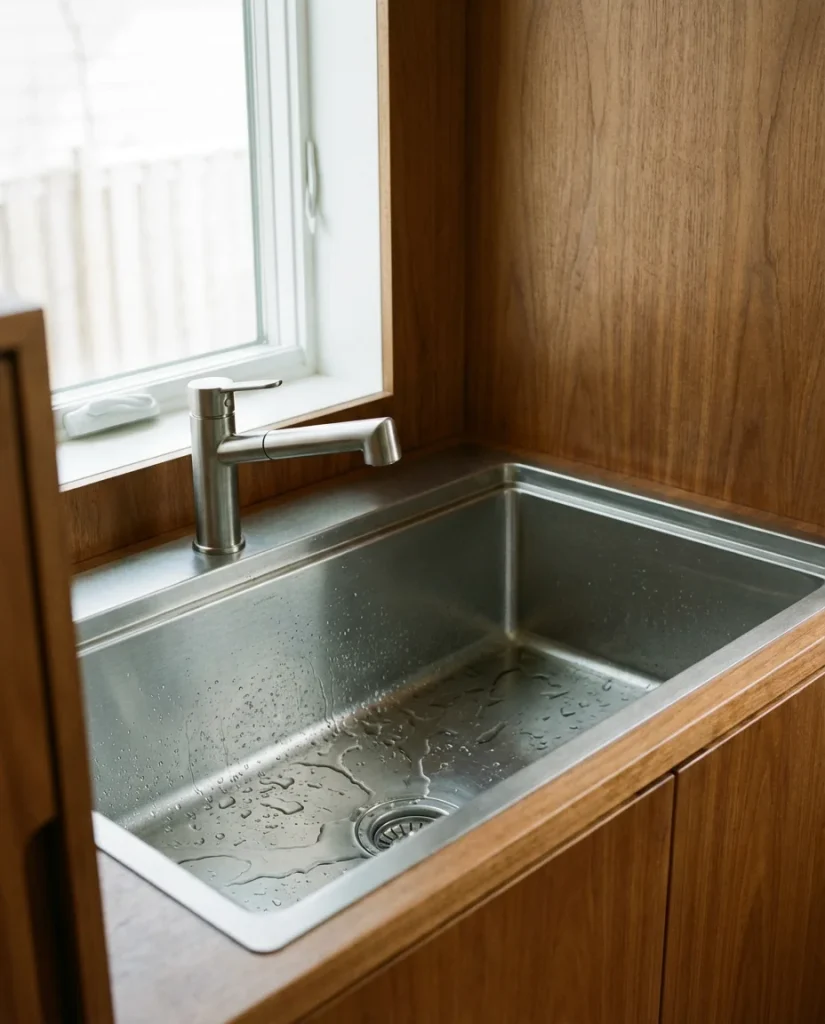 From a pure practicality standpoint, stainless steel remains the most sensible choice for most American households. It’s non-porous, hygienic, heat-resistant, and easy to clean. The primary maintenance concern—water spots and light scratches—is managed by wiping in the direction of the grain and avoiding steel wool. A sound-dampening pad on the underside dramatically reduces noise, which is one of the most common complaints about stainless. Look for sinks that include this feature from the factory; adding it afterward is possible but less effective than integrated dampening.