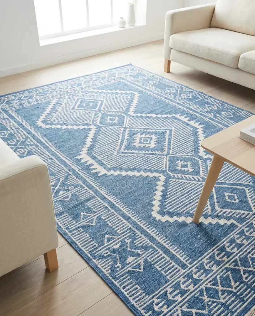 13. Blue and White Rug as the Room’s Anchor