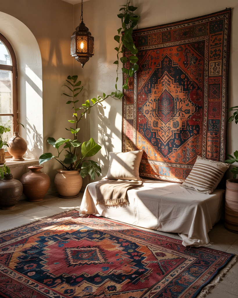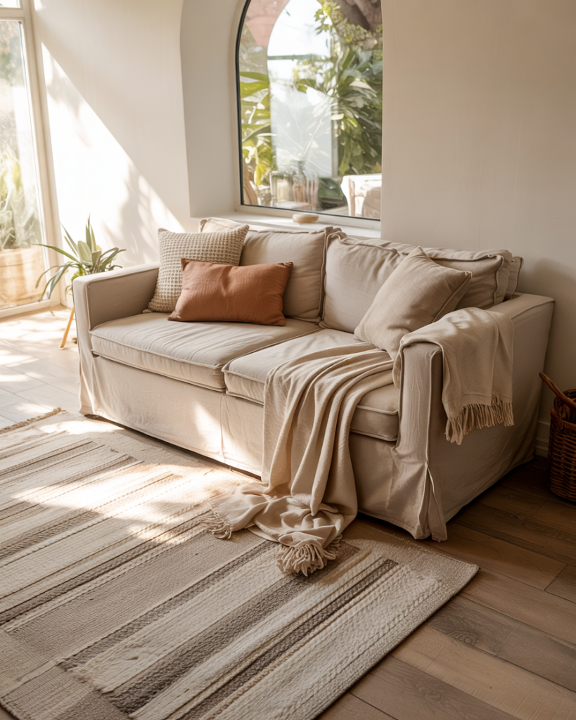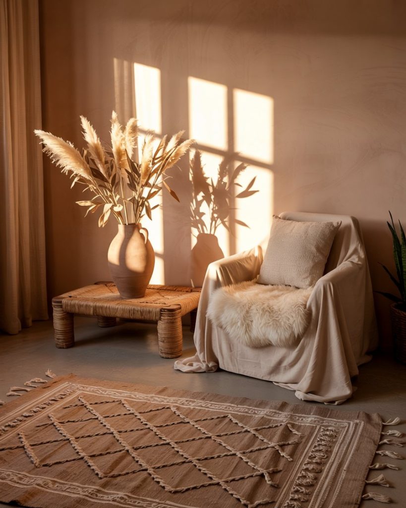 Inspired by desert landscapes, this style celebrates earthy sand tones, clay pottery, woven decor, and terracotta accents. Add cacti, handmade ceramics, and soft, neutral fabrics for a grounded warmth. During my trip to Arizona, I saw this palette used with a minimalist layout—it was serene and timeless.