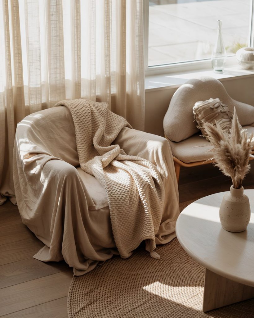A cozy neutral scheme of creams, browns, and whites gives serenity without monotony. Layer chunky knits, wooden decor, and linen cushions. My own living room follows this approach—it’s simple, airy, and endlessly comforting after a long day.