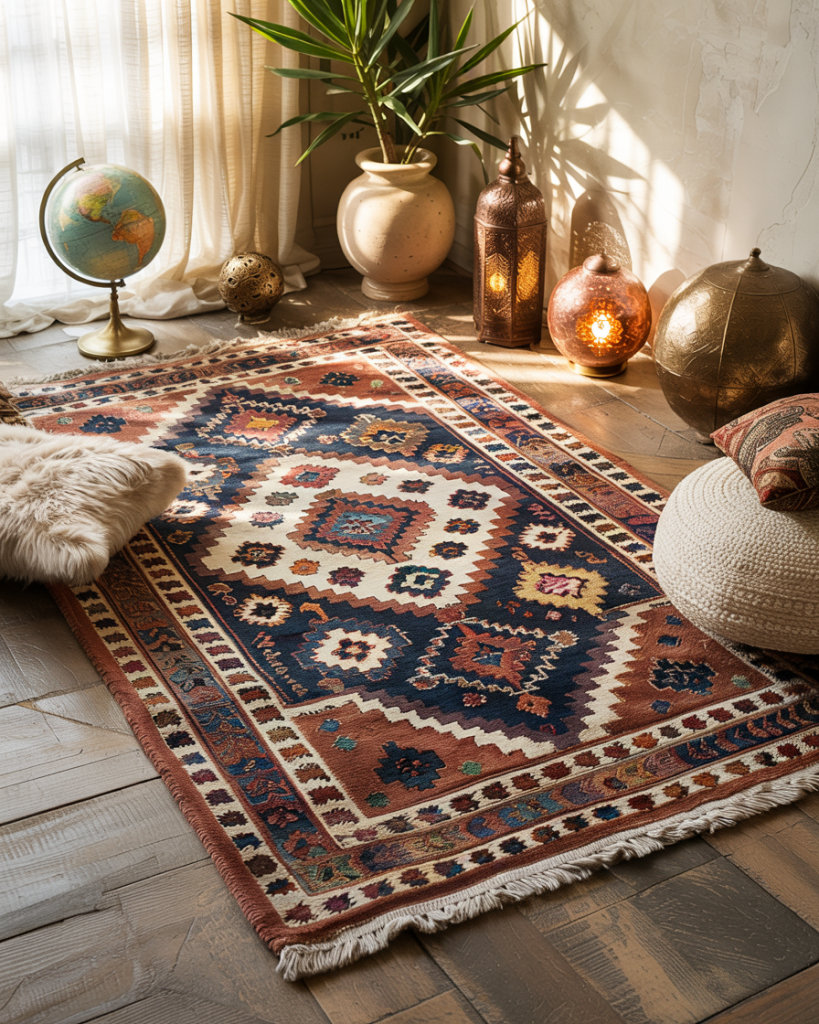 If you love bold expression, then a colorful maximalist boho living room is your zone. Think saturated hues, layered rugs, vintage pieces, bold pillows, and playful mixes of patterns. In one of my own redesigns, I combined a turquoise couch, pink accents, a mustard throw, and a kilim rug for a vibrant but cohesive boho scene that truly felt like home.