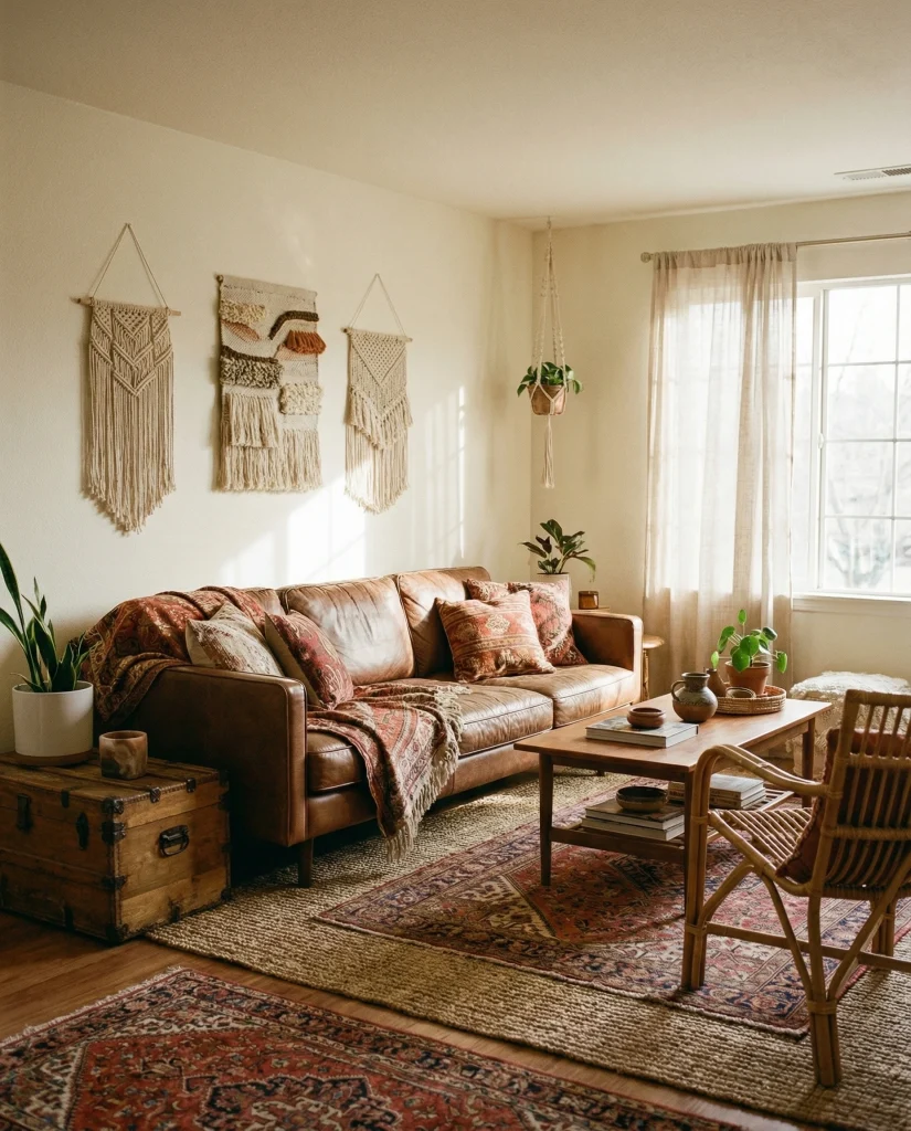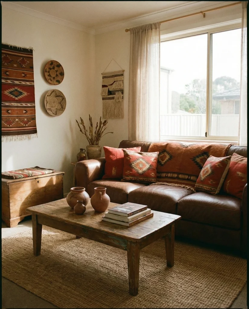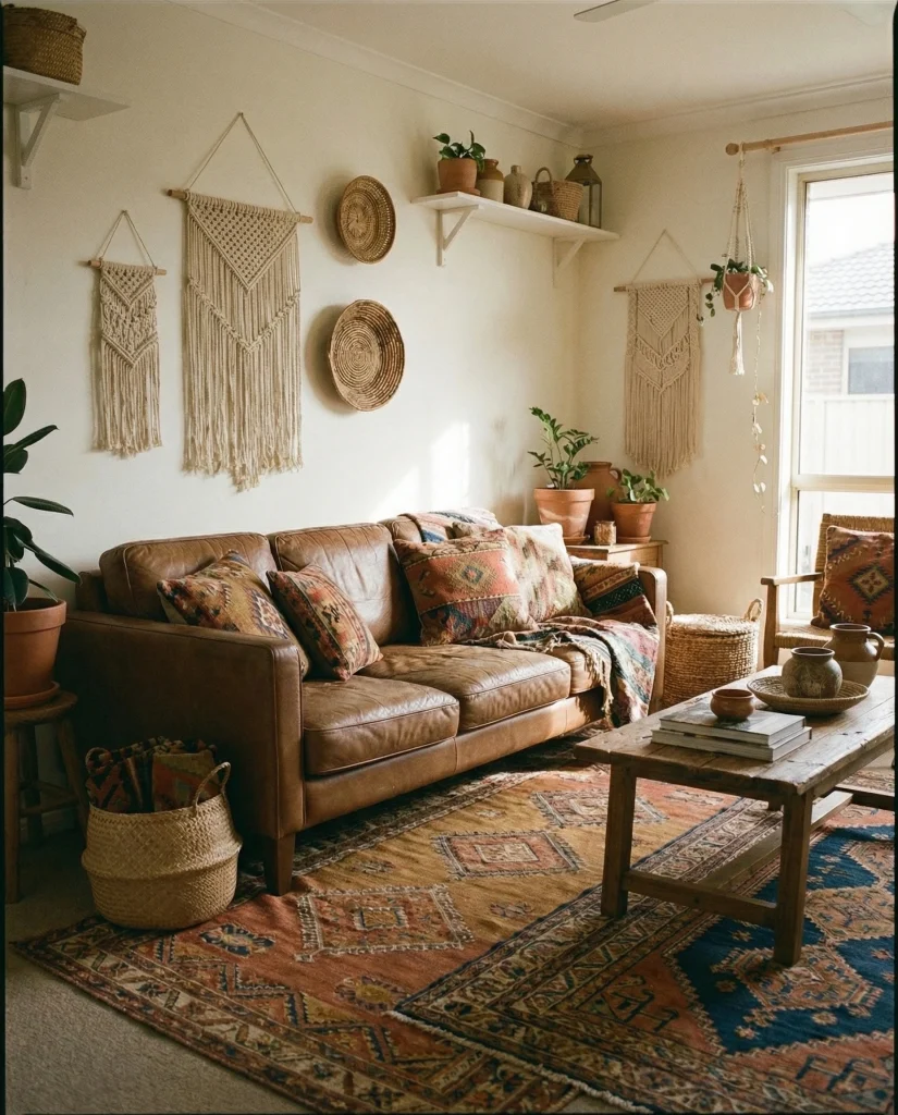 20. Bohemian Leather Charm With Patterned Rugs