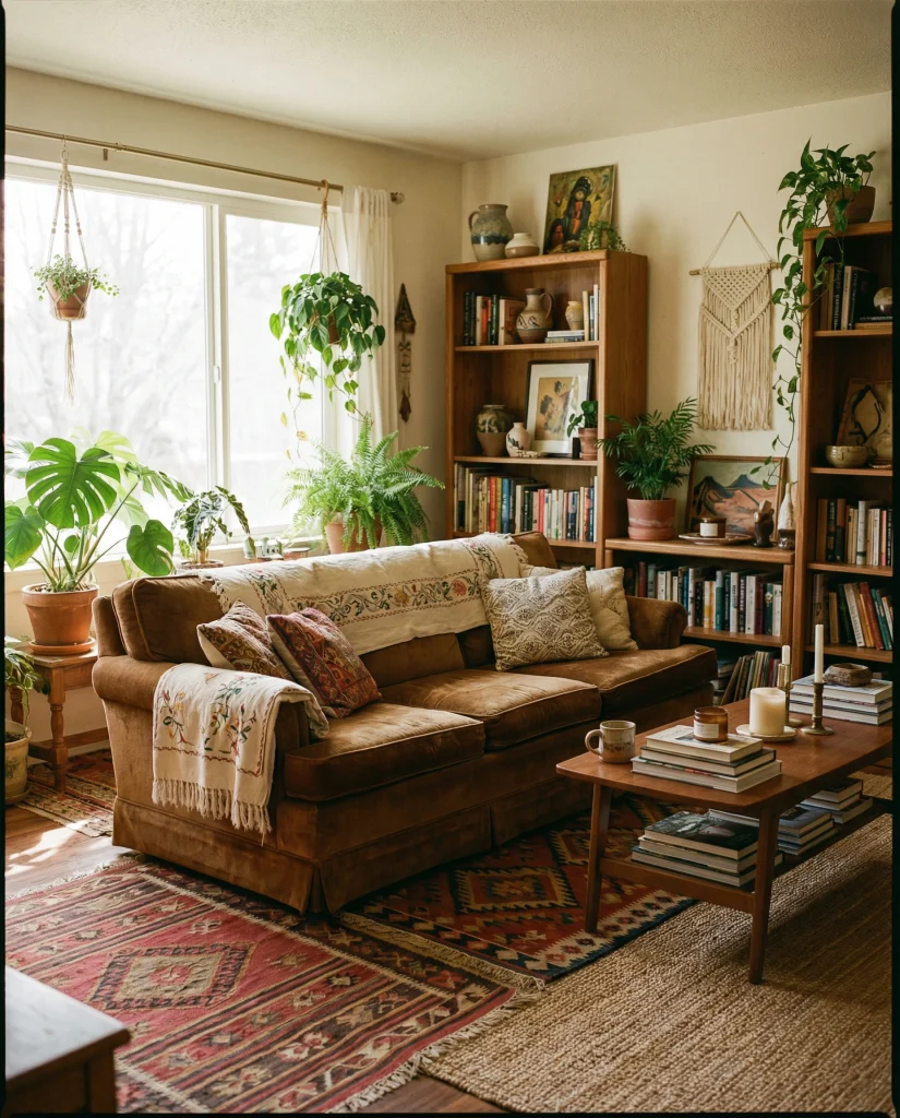 11. Earthy Boho Comfort With Warm Brown Tones
