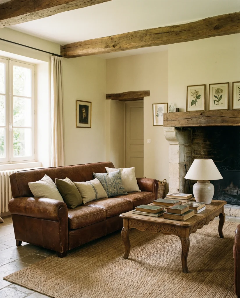 7. French Country Leather Elegance