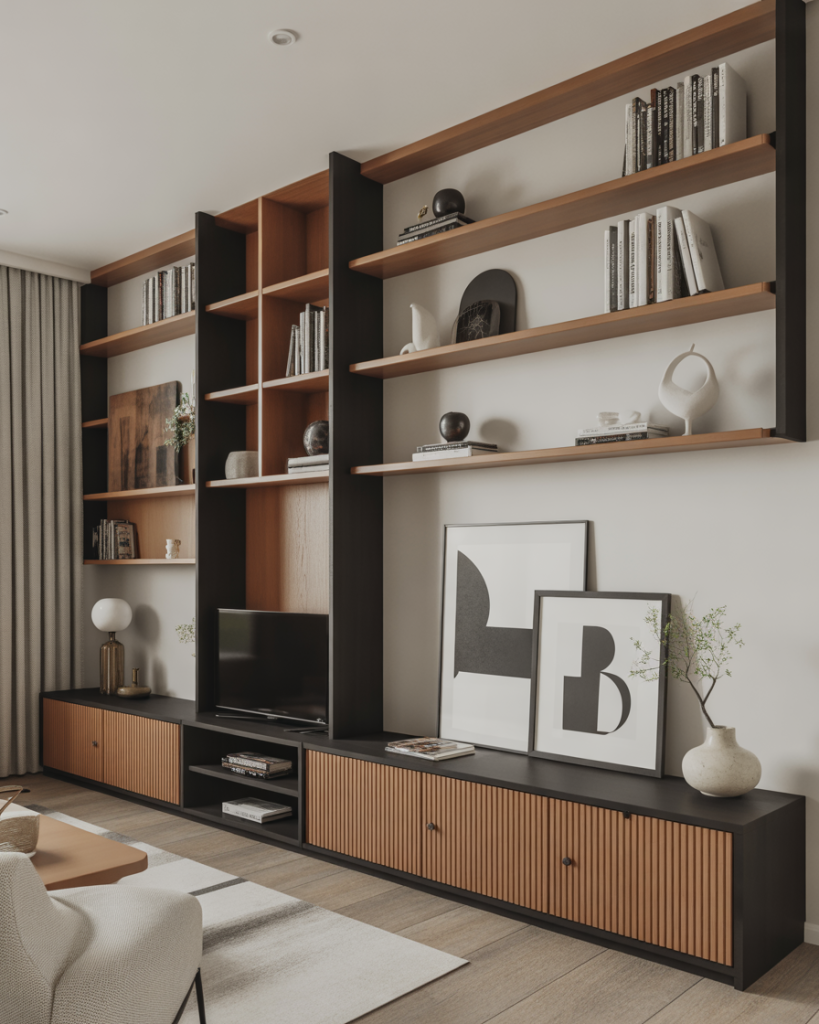 Floating built-ins make small rooms feel airy while providing practical surfaces for styling and decorating. Homeowners place them above a desk, along a long wall, or beside a fireplace for a clean-lined look. The white and black contrast trend of 2026 works beautifully here, inspired by designers on Design Milk. Many renters use DIY versions to mimic a custom feel without renovation.