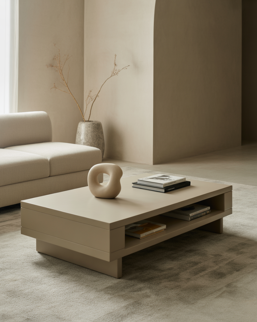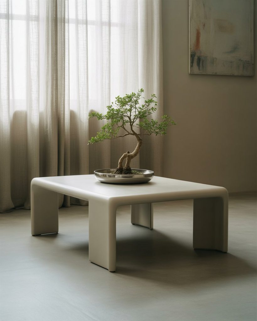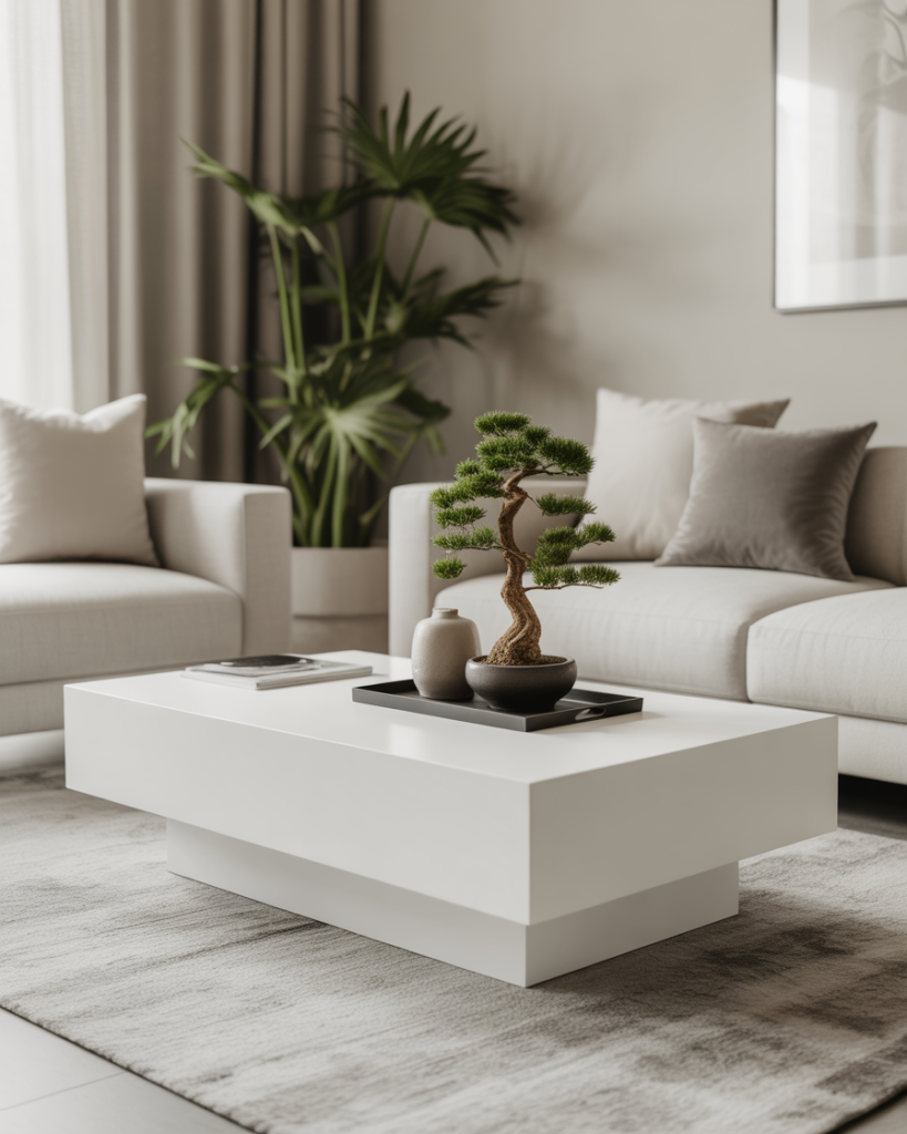 For those who love calm and clarity, a white coffee table styled in a minimalist, Japanese-inspired way is a breath of fresh air. This simple approach works well with low, rectangle or square tables that keep the living room open and serene. Add a single tray with a bonsai tree or a ceramic vase for quiet sophistication. This trend connects with the growing popularity of mindfulness at home in 2026, where less really feels like more.