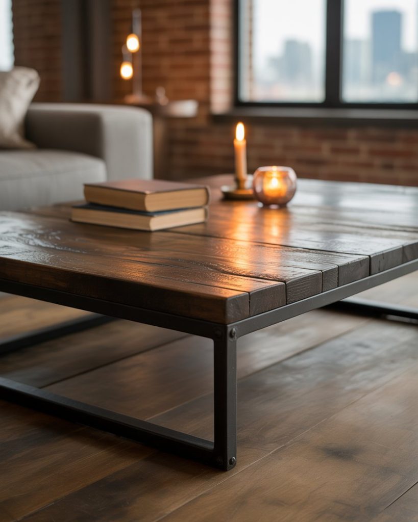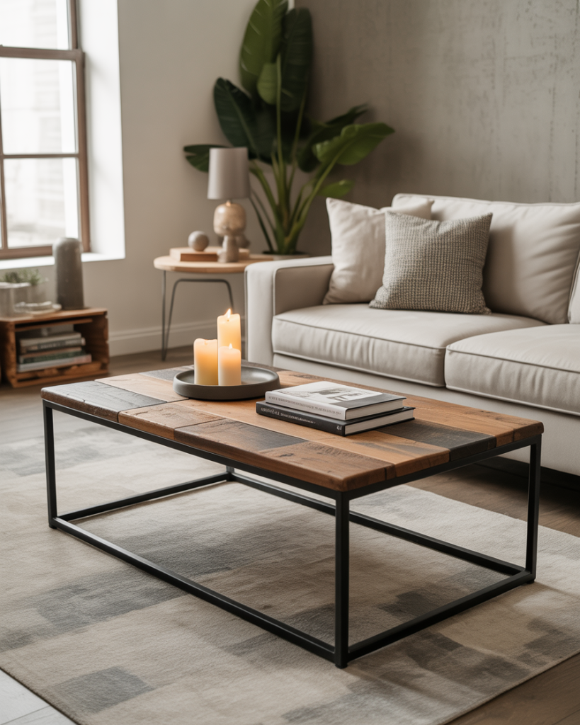 Industrial coffee tables with black iron frames and reclaimed wood surfaces are making a bold comeback in 2026. The rectangular or square shape enhances their structured appearance, making them perfect for loft-style living rooms. Pair them with exposed brick or leather sofas for a cohesive urban vibe. Styling is easy—just a tray with candles or simple books works, because the table itself is the star. It’s rugged, stylish, and built to last.