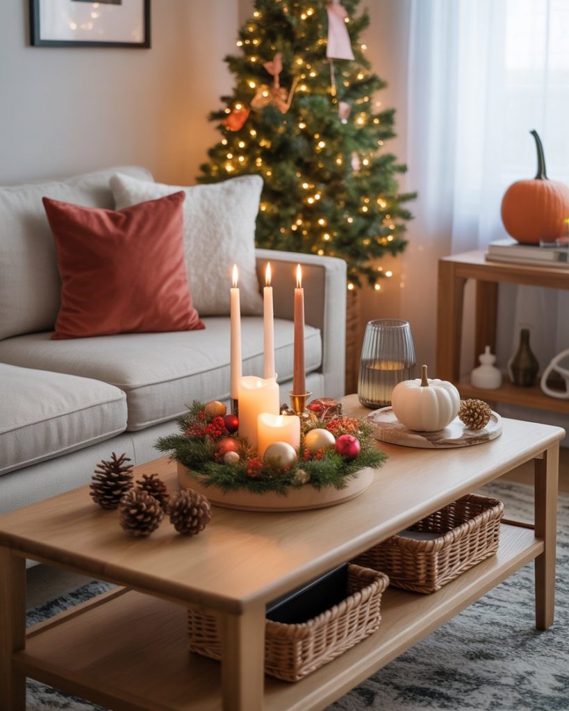 Coffee tables in 2026 are seasonal storytellers, shifting effortlessly for Christmas, Halloween, or autumn moods. A simple tray can hold frosted candles, ornaments, or tiny pumpkins, transforming your round glass or wooden farmhouse table instantly. The key is restraint—swapping details without cluttering the space. This approach makes it easy to refresh your décor, turning an everyday table into a celebration centerpiece without the need for constant redecorating.
