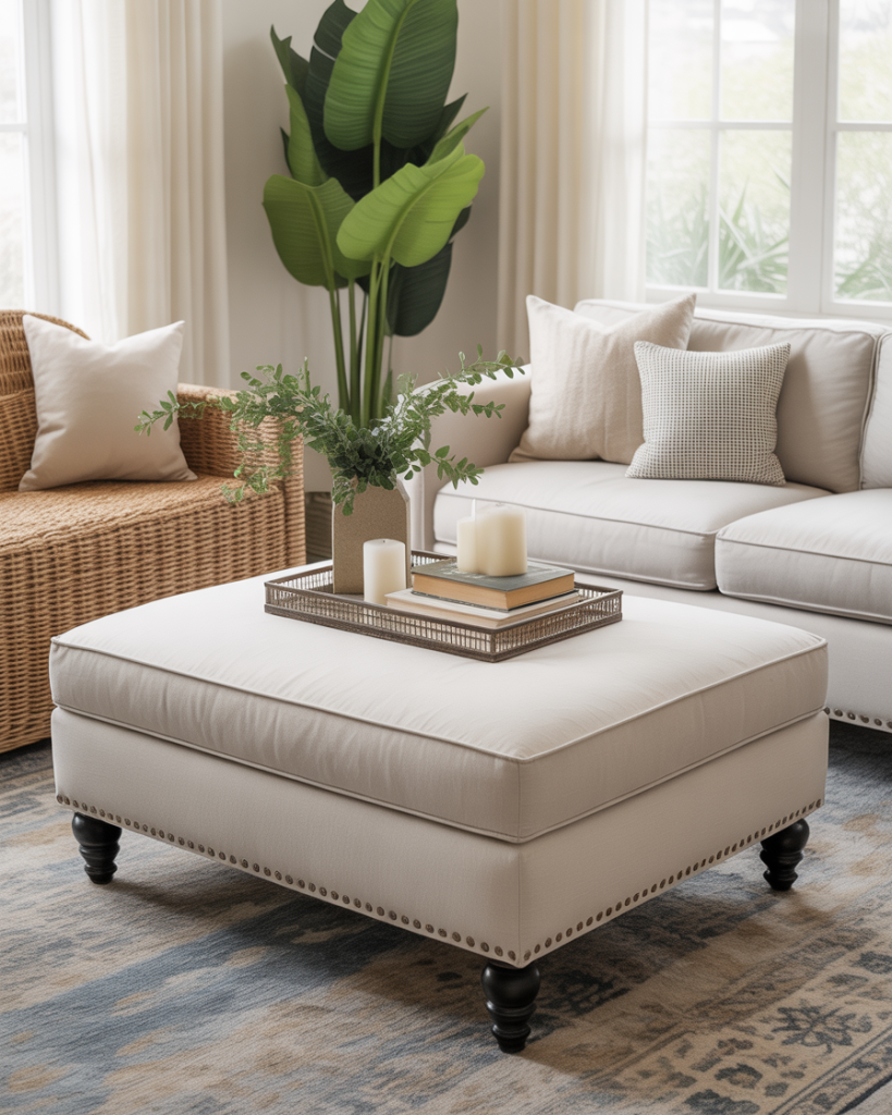 The ottoman coffee table is all about versatility—part seating, part surface, part statement. Upholstered in leather or fabric, it becomes both functional and cozy. Adding a tray helps balance drinks, books, or décor while keeping the surface practical. The style can lean modern with clean lines or vintage with tufted finishes. Ottomans are also gaining popularity in outdoor covered patios, offering casual luxury while encouraging relaxation.