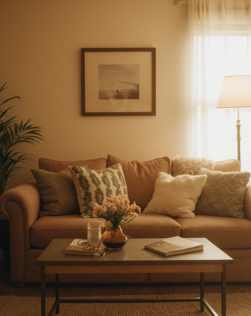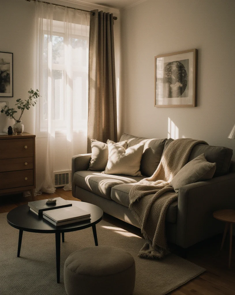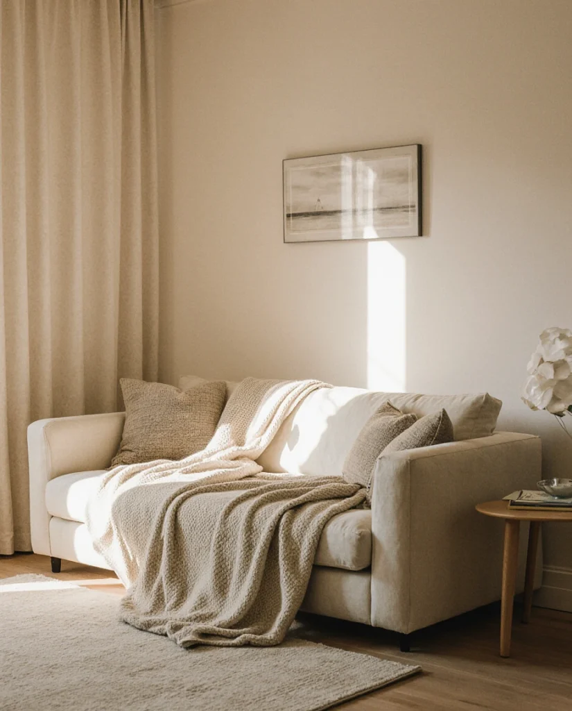 A neutral-focused cozy room uses beige, cream, and taupe to create a calm, harmonious atmosphere. These tones feel warm and adaptable, working beautifully with wood, soft fabrics, and subtle décor. Homeowners appreciate how neutrals make small spaces feel airy while maintaining comfort. Many interior writers recommend layering different neutral textures to avoid flatness.