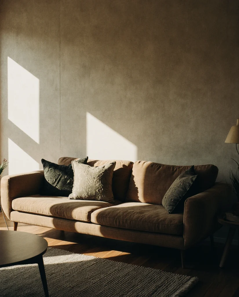 Browns, rustic colors, and clay textures give a heavy, lived-in feeling to the room. Many decorators suggest vintage earth-tone add-ons to add warmth in a soft and easy way, especially for those wanting to ease the harshness of a modern layout.