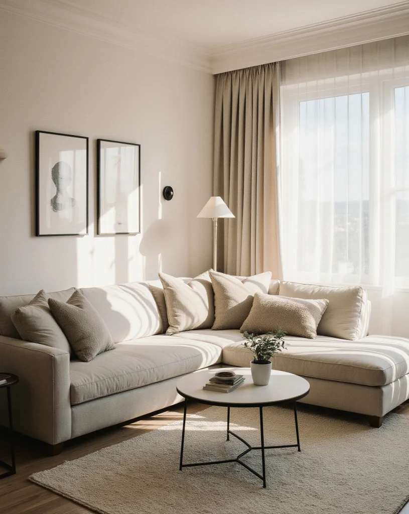 The classy neutrals approach, consisting of soft cream, gentle brown, and elegant shapes, creates a polished yet livable space. This style works beautifully for large rooms and small apartments. Elegant, classy living rooms are appreciated for their ability to combine comfort with a sophisticated touch, especially when warm lighting and plush textures are used.
