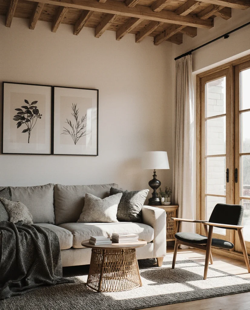A rustic style adds a sense of natural comfort through wood, woven fabrics, and simple details. Homeowners appreciate how easily this works in both large living rooms and compact apartments. Its relaxed charm pairs well with neutral tones and soft accessories, offering a grounded feeling that keeps the space approachable and warm.