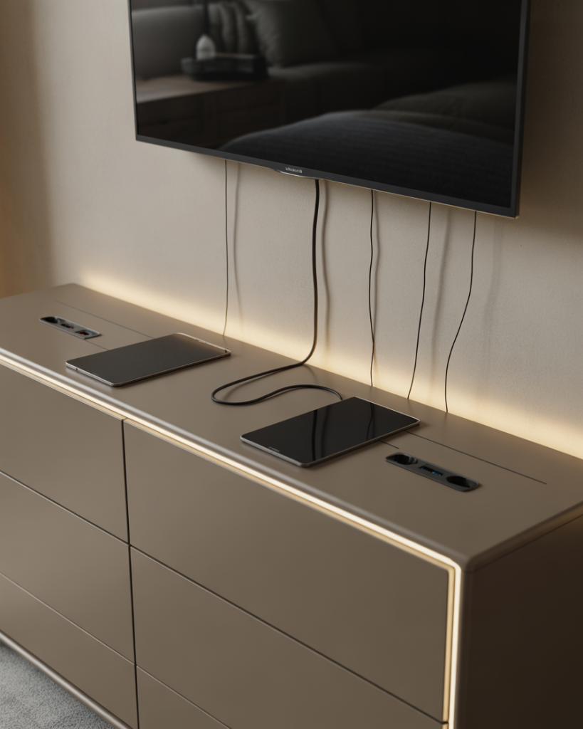 As more people embrace a bedroom with a TV mounted, dressers are getting smarter. Hidden charging docks, cable slots, and sleek long surfaces keep tech tidy. This works for renters who can’t alter walls or anyone who wants modern function without clutter. Pair with matte finishes and slim lamps for a clean, efficient setup.