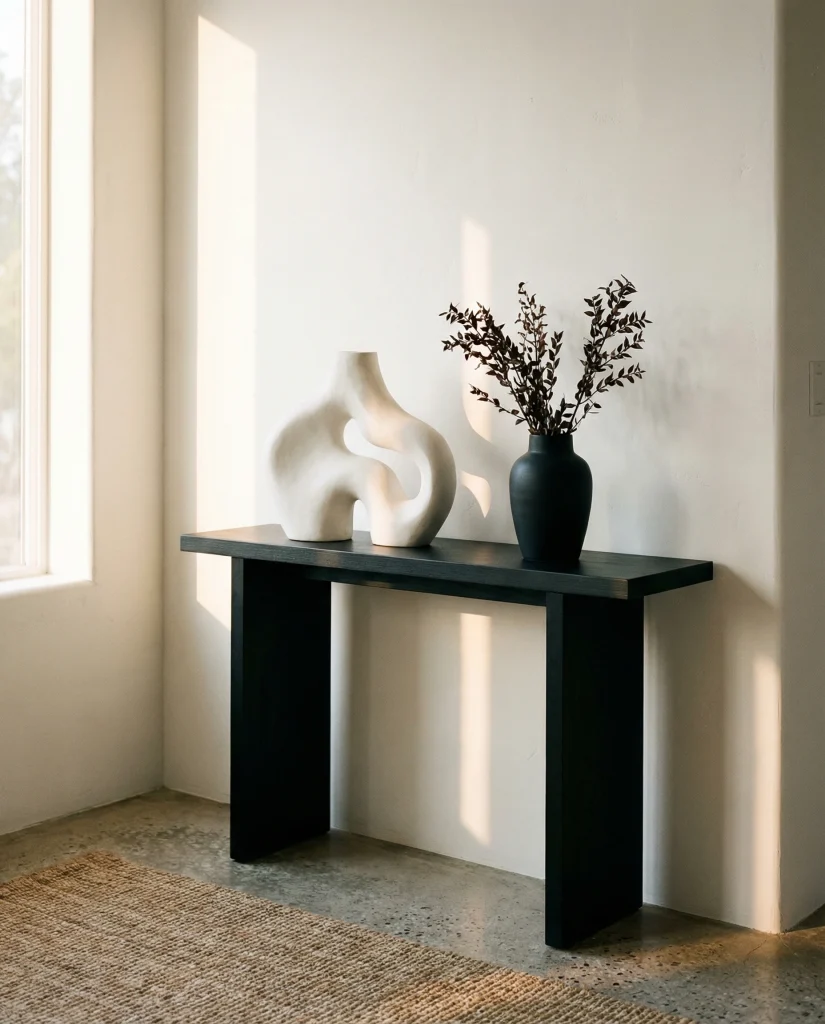 A round entry table creates flow within tight corridors or entry foyers. My friend said she moved from a square console to a round one, and suddenly she felt her narrow entryway appeared much bigger. Earthly Vase silhouettes in gleaming black or cultural whites ground the look and make sense in modern interiors. A more natural circulation point for everyday necessities at a bigger spot, the shape looks great in a modern home.