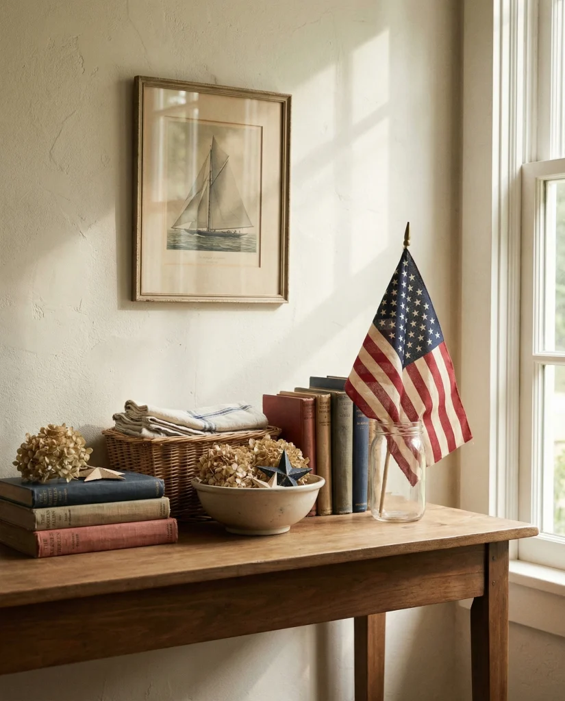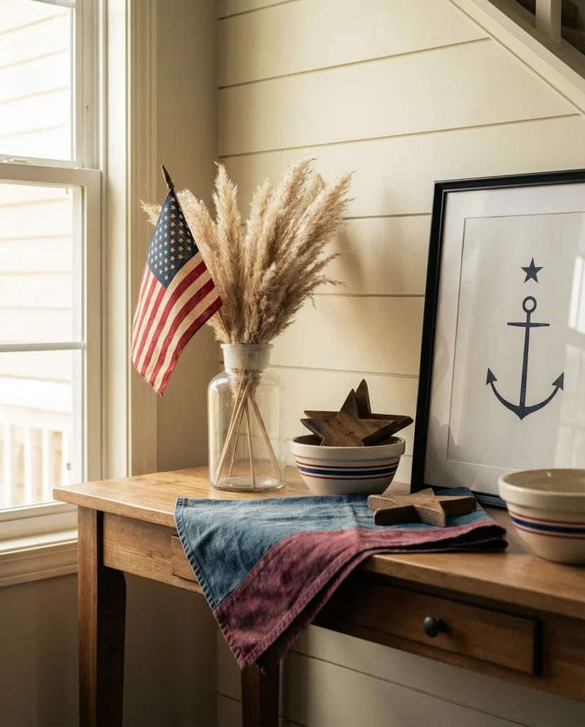 The last place a 4th of July entry table should ever be is loud. Soft navy and muted reds are accented by the smallest strings of glass jar American flags in accent honor without becoming tacky. Combining vintage with modern forms will give notice of the ills inherent in a mischievous style, according to the design artist, who created a swell trend for homeowners to wear in 2026. It is the terrific formula for all sorts of ideas: holiday charm meets current design trends.