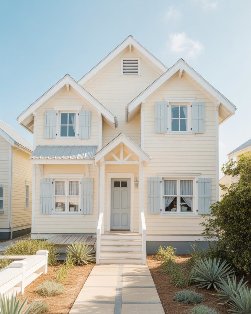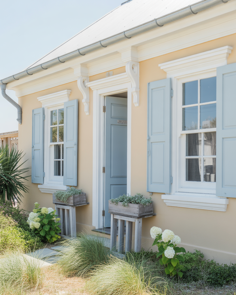 A combination of soft cream and airy blue details gives homes a breezy coastal character aligned with 2026 trends. A friend who lives near the Jersey Shore used this palette, and the house instantly felt brighter. It creates a welcoming mood that works for cottages, beach homes, and modern traditional builds.