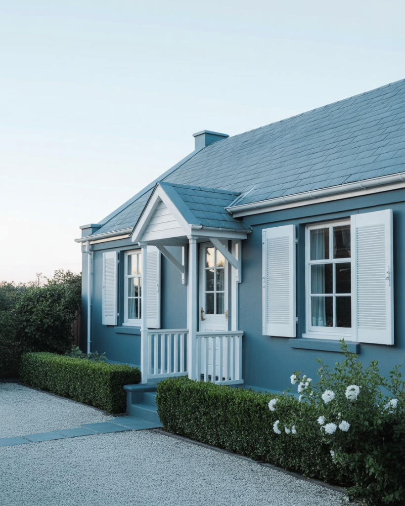 Subtle blue-gray shades create a fresh and relaxing vibe perfect for classic cottages and small suburban homes. This tone fits 2026 minimal trends while still offering personality. A neighbor repainted with this palette, and the house suddenly looked more spacious and crisp, especially with white accents.