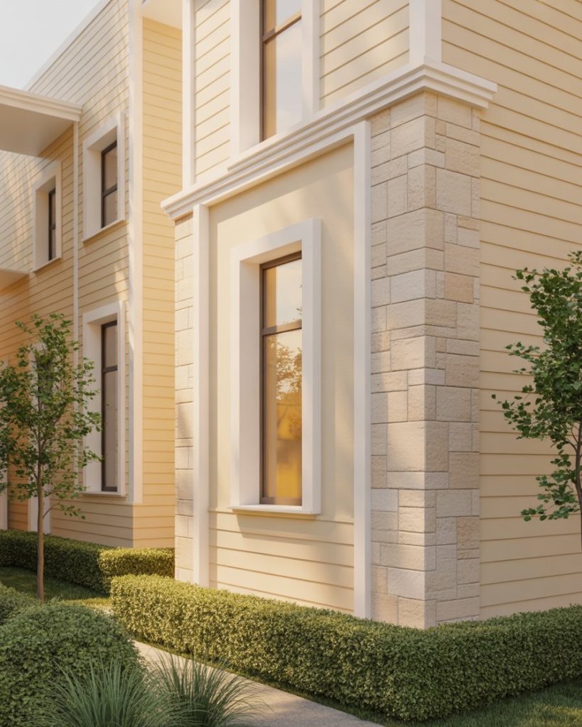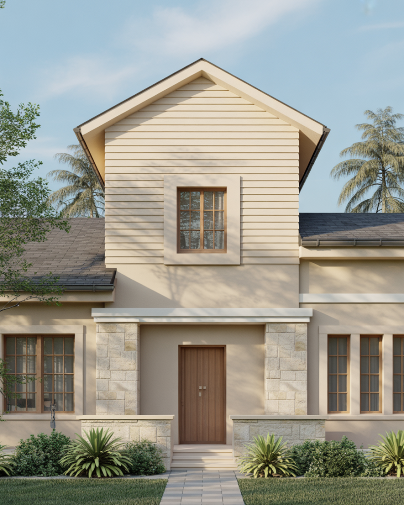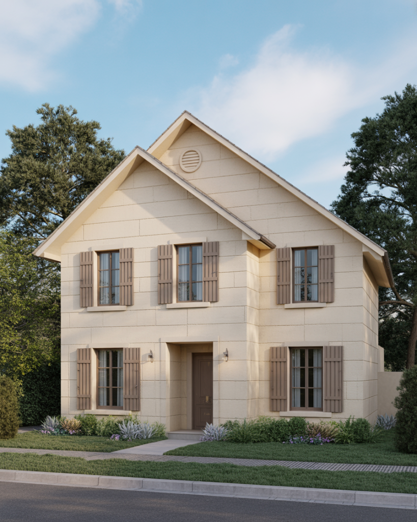 Warm beige, soft cream, and airy neutrals fit the timeless side of 2026 trends. Many new communities use them because they flatter almost every architectural style. I’ve seen these tones make even simple homes feel brighter and more refined. They pair beautifully with wood shutters, black accents, or modern metal roofing.