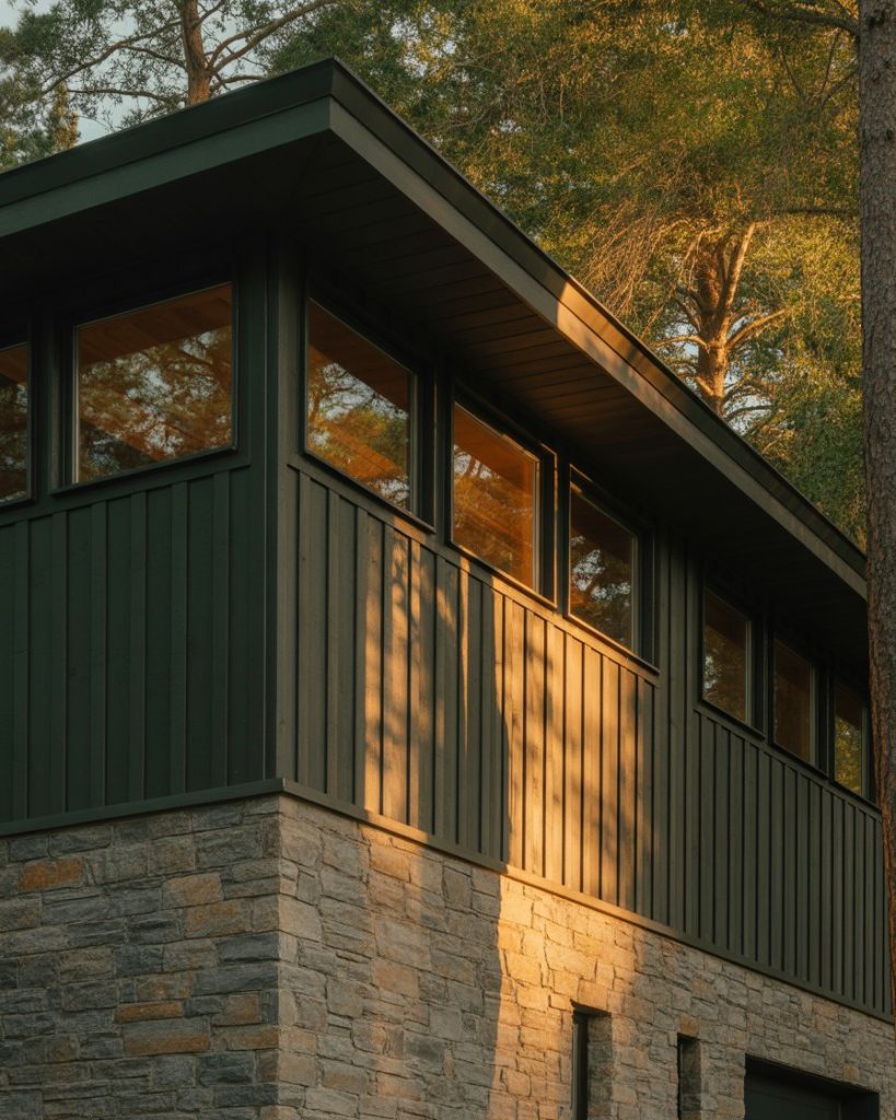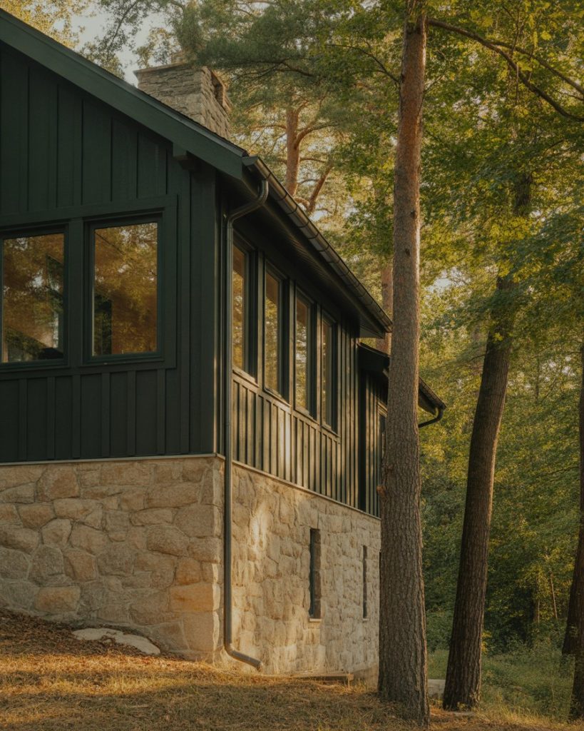 Pairing Dark green with textured Stone delivers a luxurious outdoor profile inspired by mountain architecture. During a recent cabin renovation I visited, this palette made the structure feel rooted in nature. It fits 2026 trends focused on dramatic natural influence and warm organic materials.