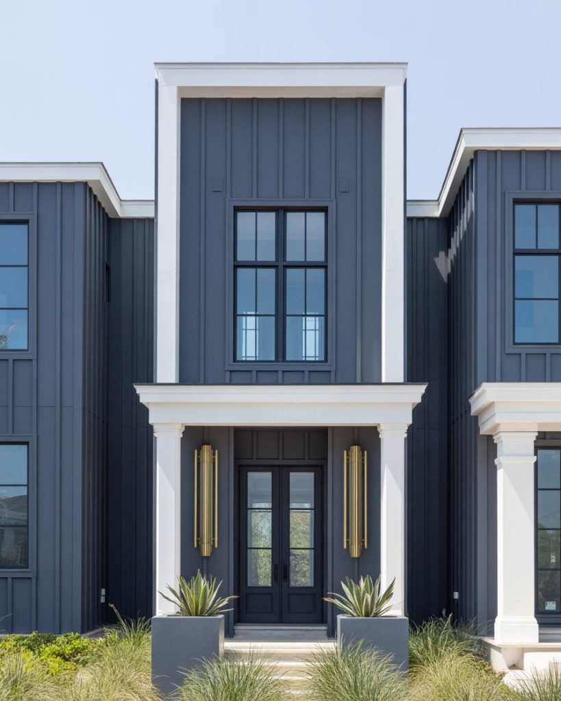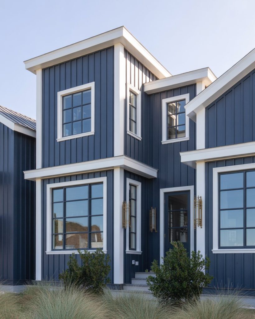Rich Dark blue, coastal palettes, and crisp trim are gaining popularity in 2026 for their sharp yet calming appearance. A friend in Maine used this color on her craftsman, and the contrast with white windows made the façade feel instantly elevated. It pairs well with brass lighting and tidy landscaping for a refined nautical touch.