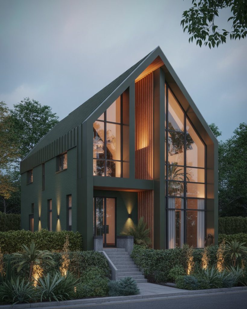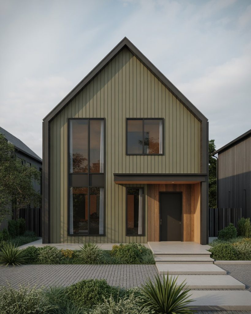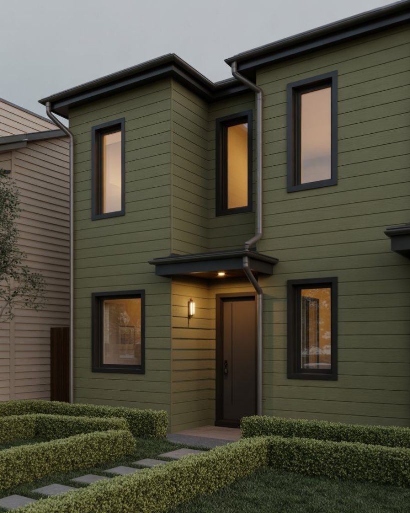 Deep olive green, richer undertones, and warm combinations create an expressive look that designers love for 2026. A contractor once told me this hue feels like “quiet luxury” on a ranch or cabin. Paired with matte black or bronze trim, it adds depth and character without overwhelming the architecture.