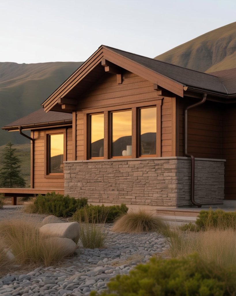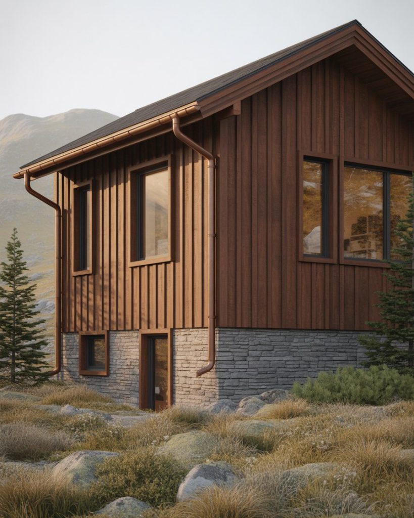 Natural Brown paired with Stone elements creates a grounded and comforting look inspired by mountain homes. I once stayed in a cabin painted in this palette, and it felt instantly connected to the surrounding landscape. This combination brings warmth without overwhelming the structure, fitting many 2026 natural design trends.