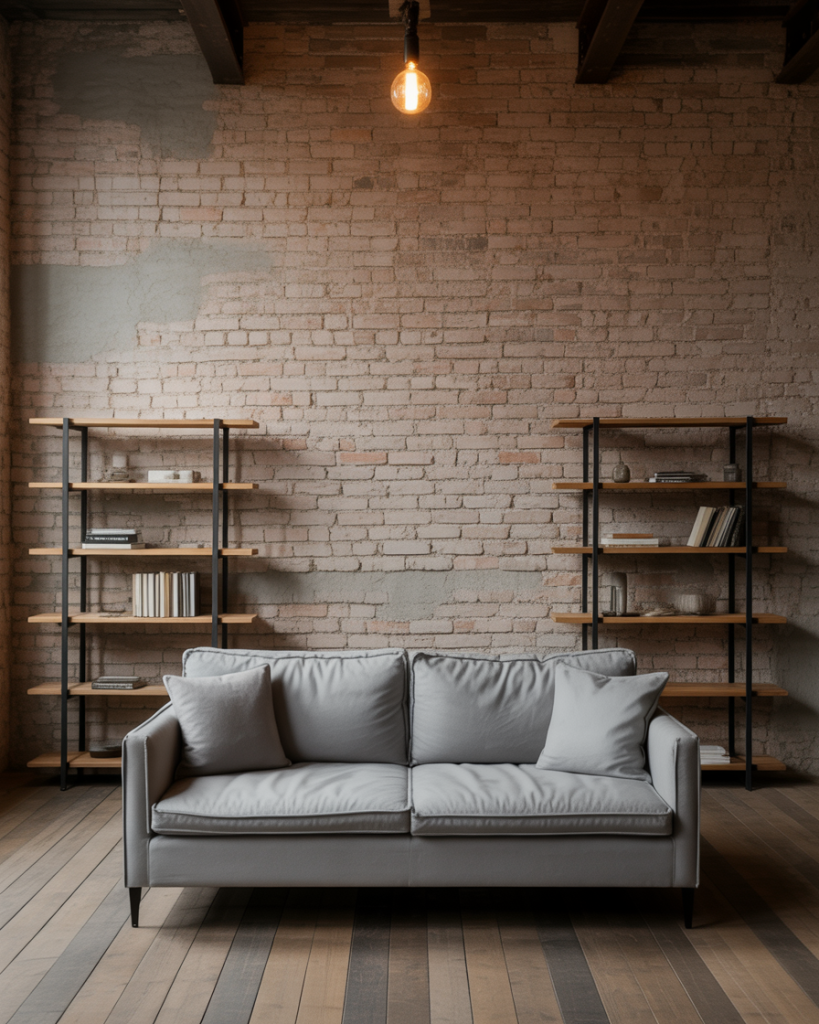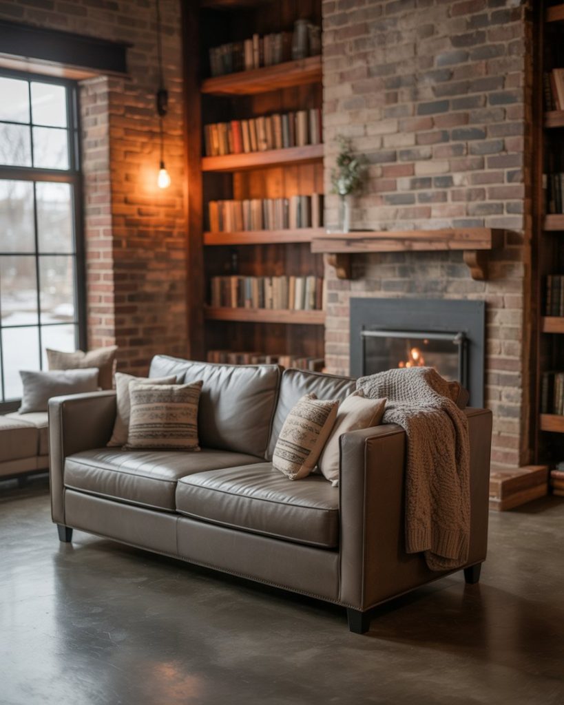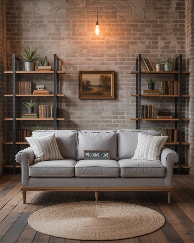 An industrial farmhouse blends raw edges with homeliness. Picture exposed brick walls, black shelving, and a grey couch against reclaimed wood. It’s bold yet inviting, especially when paired with dark accents. I once visited a loft styled this way—it had soaring ceilings and tough materials, yet the farmhouse touches made it feel like a place to truly relax. Industrial design adds grit without losing warmth.
