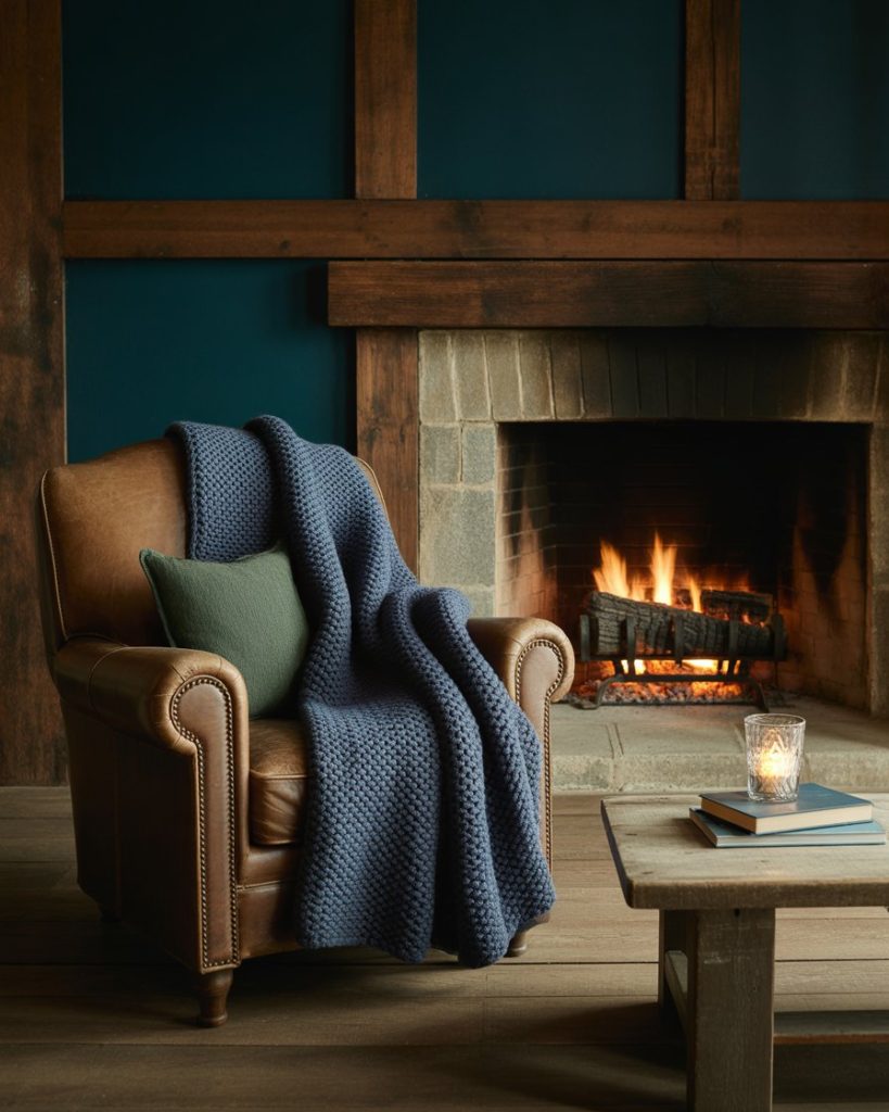 A moody farmhouse living room embraces deeper tones—navy, charcoal, and forest green—paired with rustic textures. It’s the opposite of light-and-airy, offering intimacy and drama. Adding a dark accent wall or heavy drapes can make the space feel grounded. I once sat in a moody farmhouse room during winter, and the glow of the fireplace against deep walls made it unforgettable. This approach is ideal if you want sophistication with a sense of coziness.